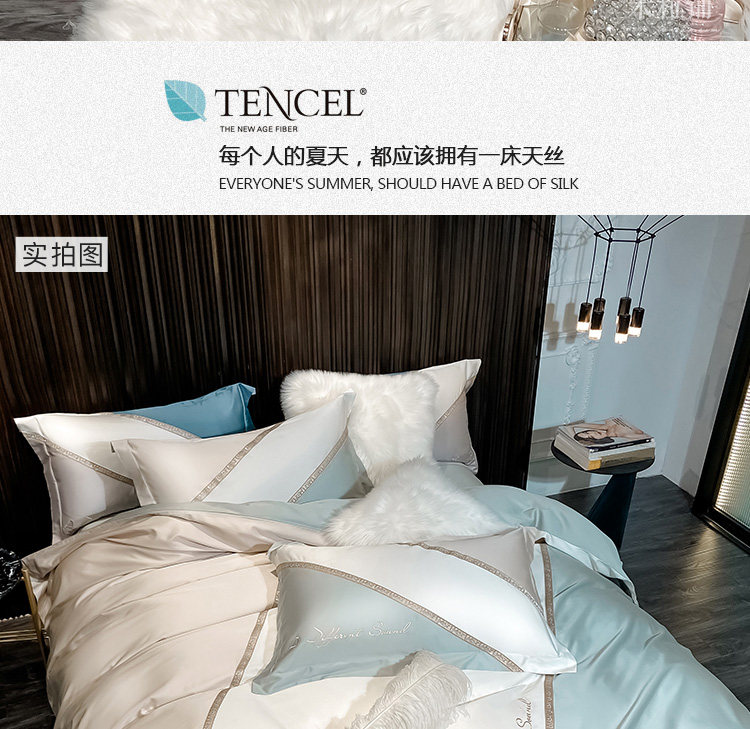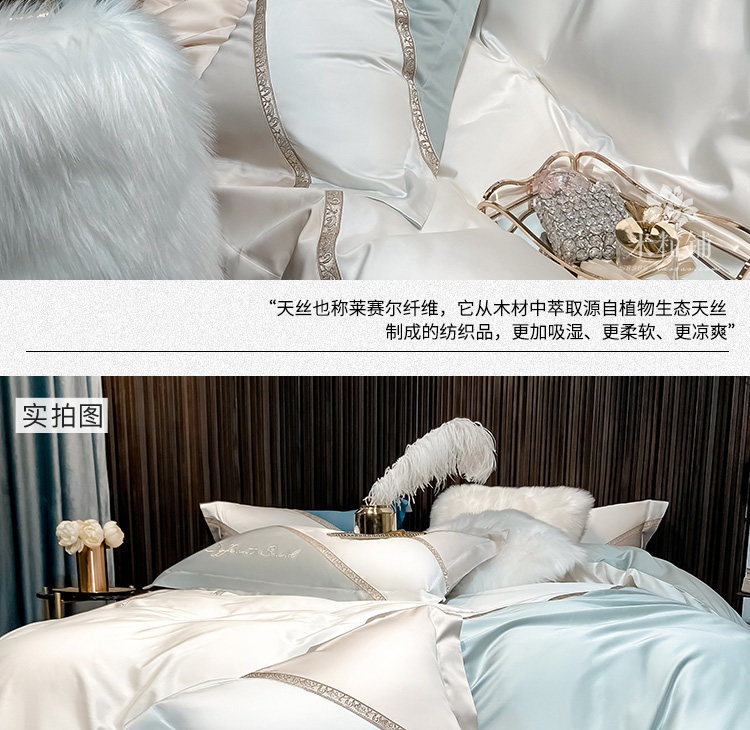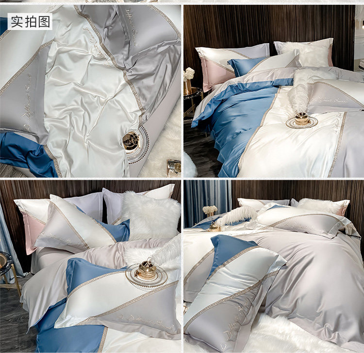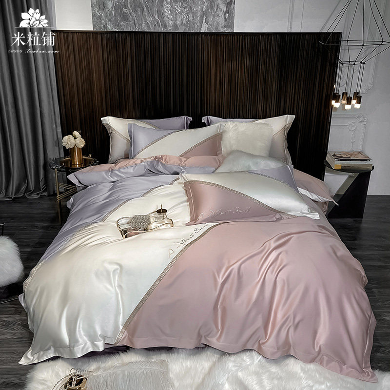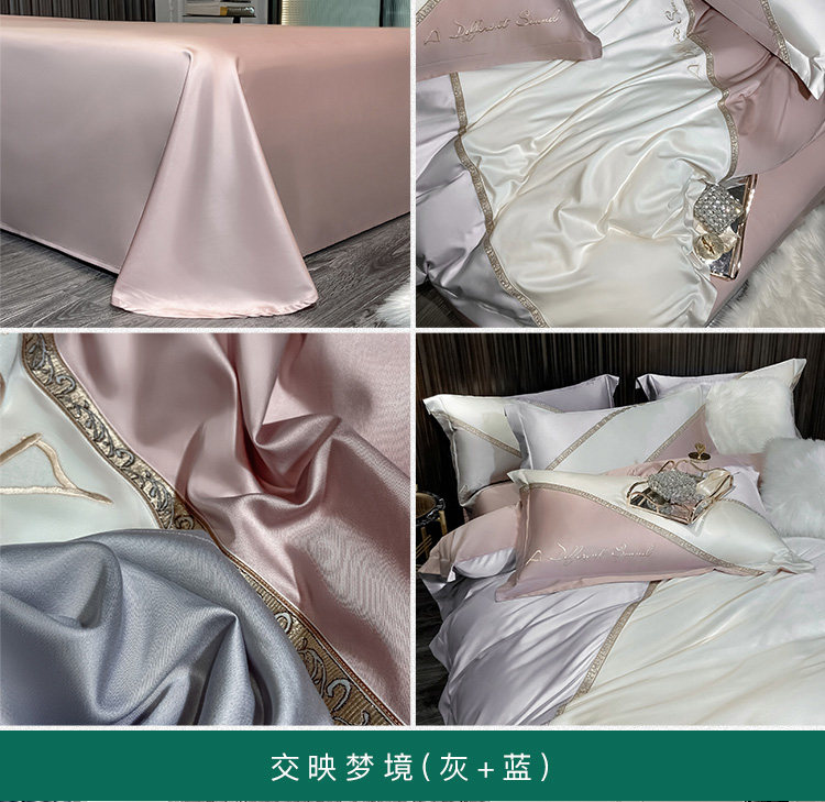 Шелковый комплект для приставной кровати, летнее покрывало, простой и элегантный дизайн, 4 предмета, легкий роскошный стиль, с вышивкой