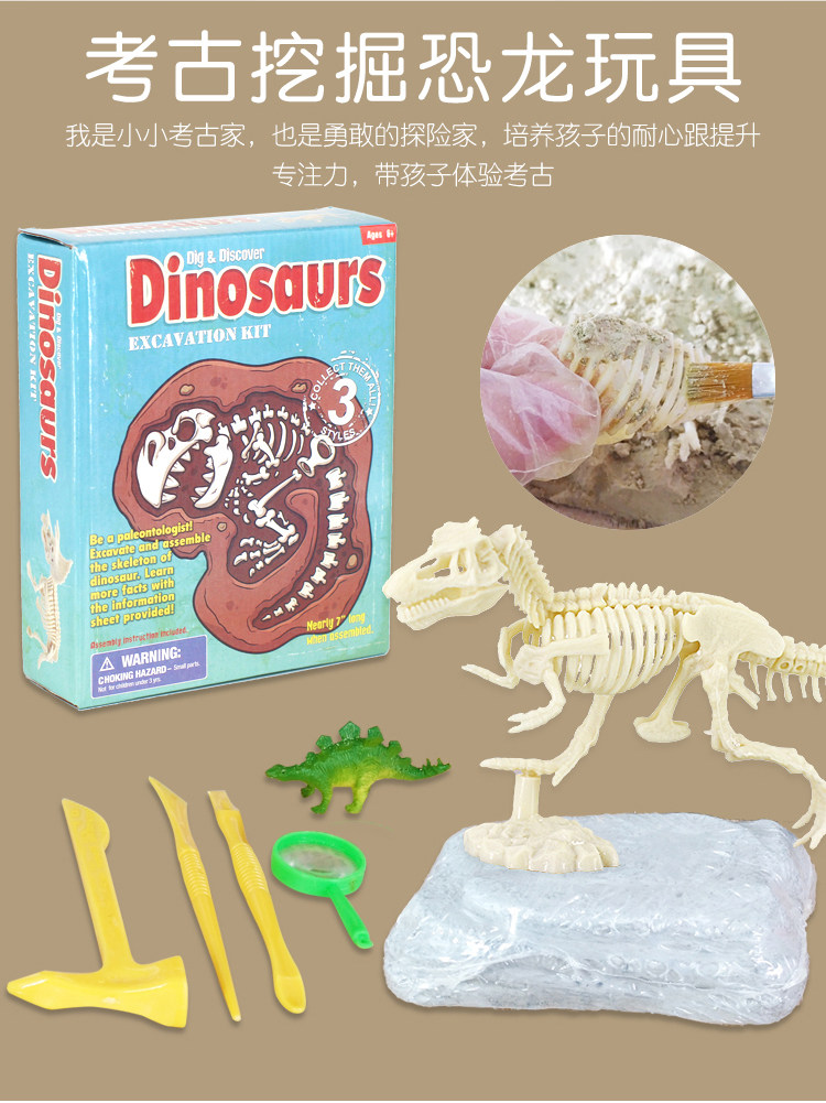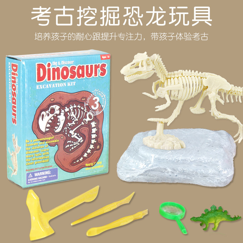 Археологический динозавр, игрушка, скелет, конструктор, DIY, ископаемые, археологические раскопки, с драгоценным камнем, юрский период, тираннозавр Рекс