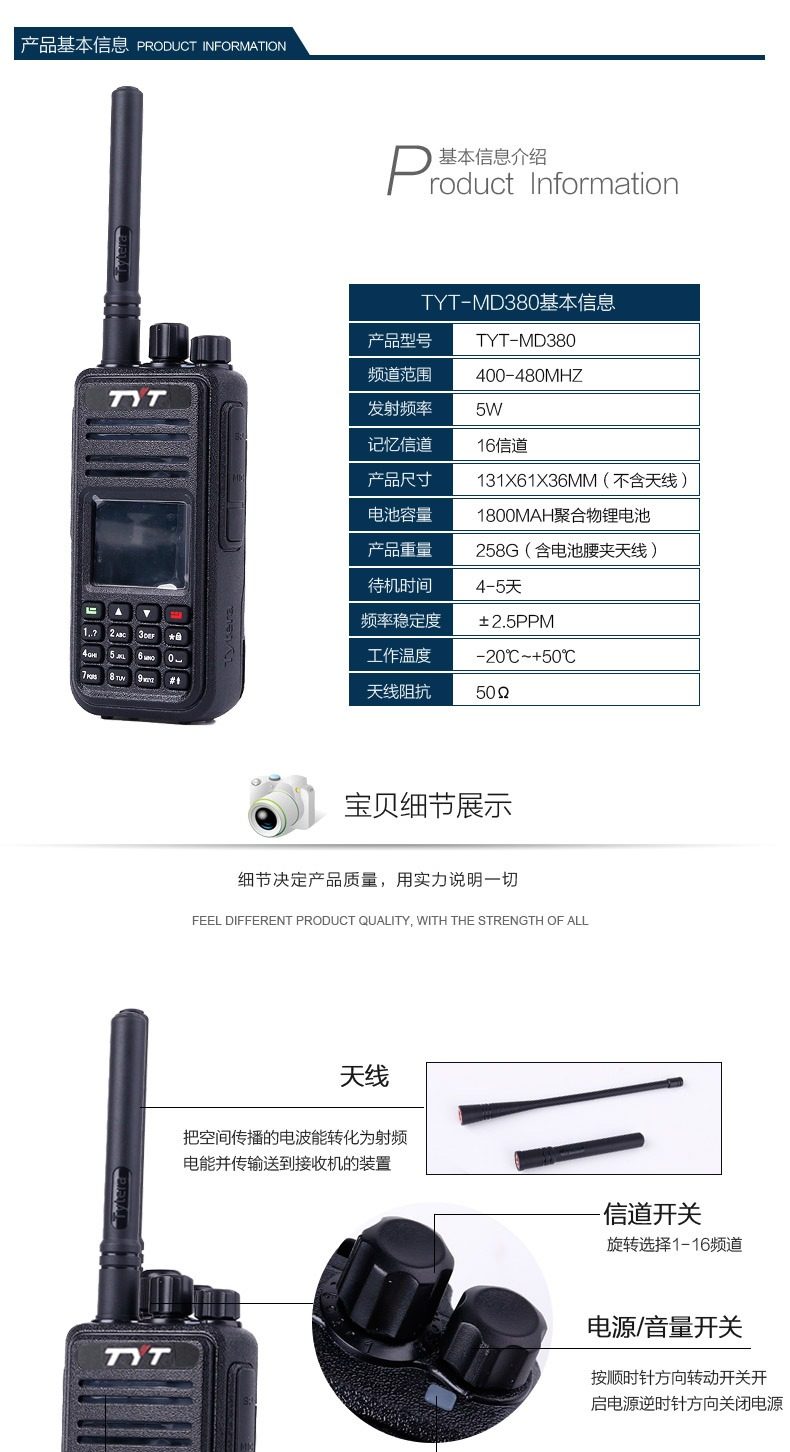 Tyt Tytitong MD-380 Tek The Digital Drive DMR Self-Tour Tour 50 Мощный гражданский цифровой режим Двойное использование