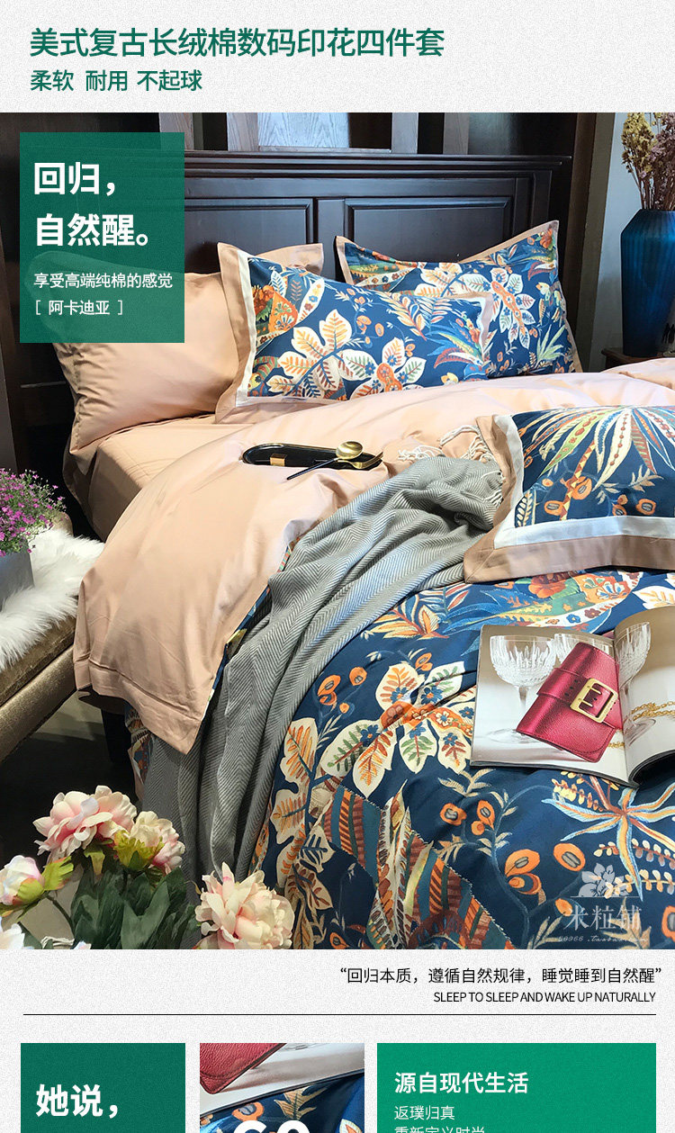 Ретро хлопковый комплект, покрывало, в американском стиле, 60 шт, 4 предмета, легкий роскошный стиль