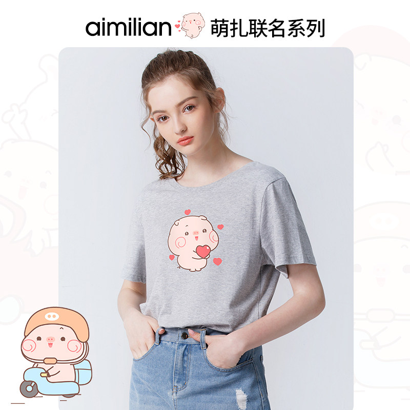 艾米恋 Хлопковая летняя футболка, семейный стиль, короткий рукав, свободный крой, 2020 года, городской стиль