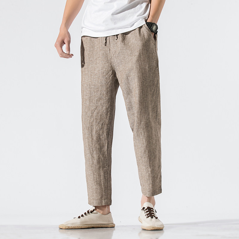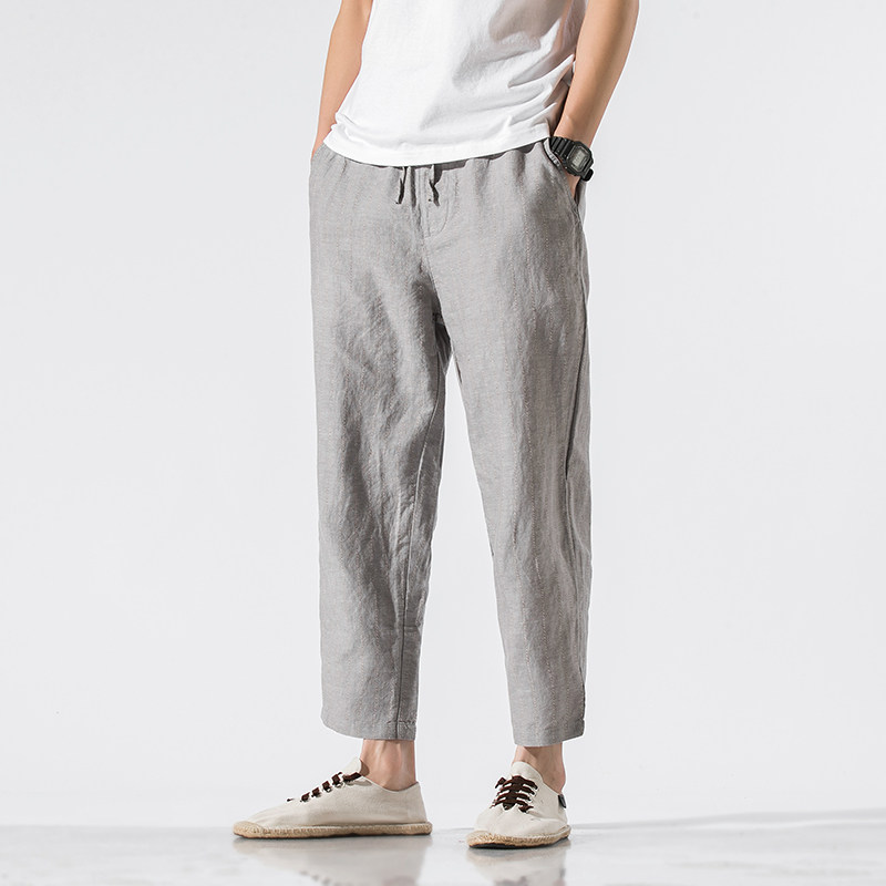 Летние тонкие ретро штаны, китайский стиль, из хлопка и льна, свободный прямой крой