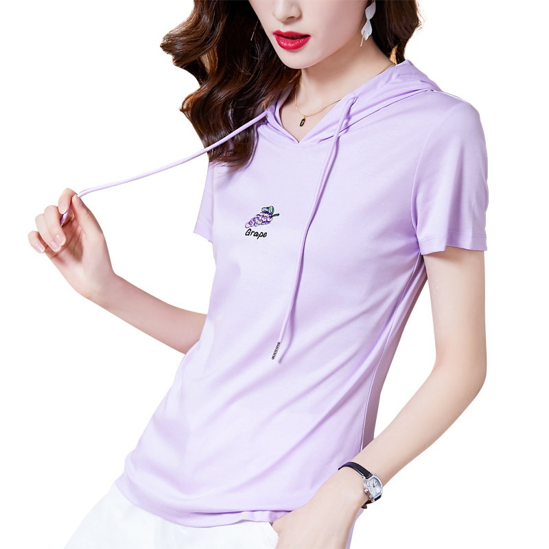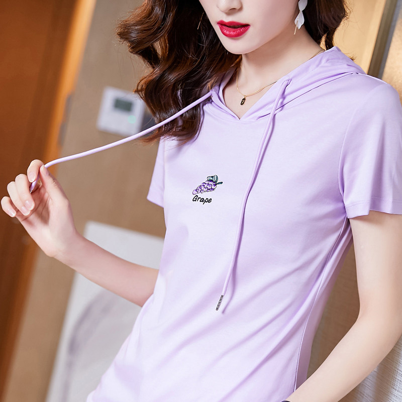 Сиреневая хлопковая футболка с капюшоном, с вышивкой, 2021 года, облегающий крой