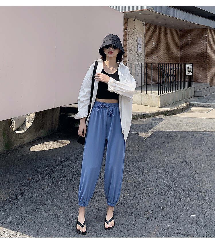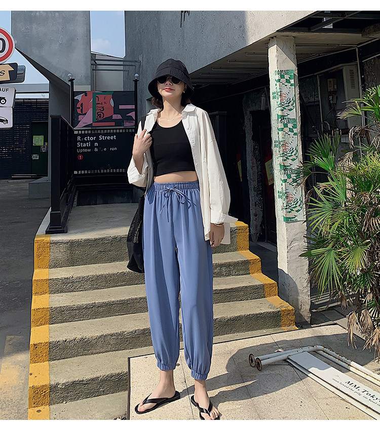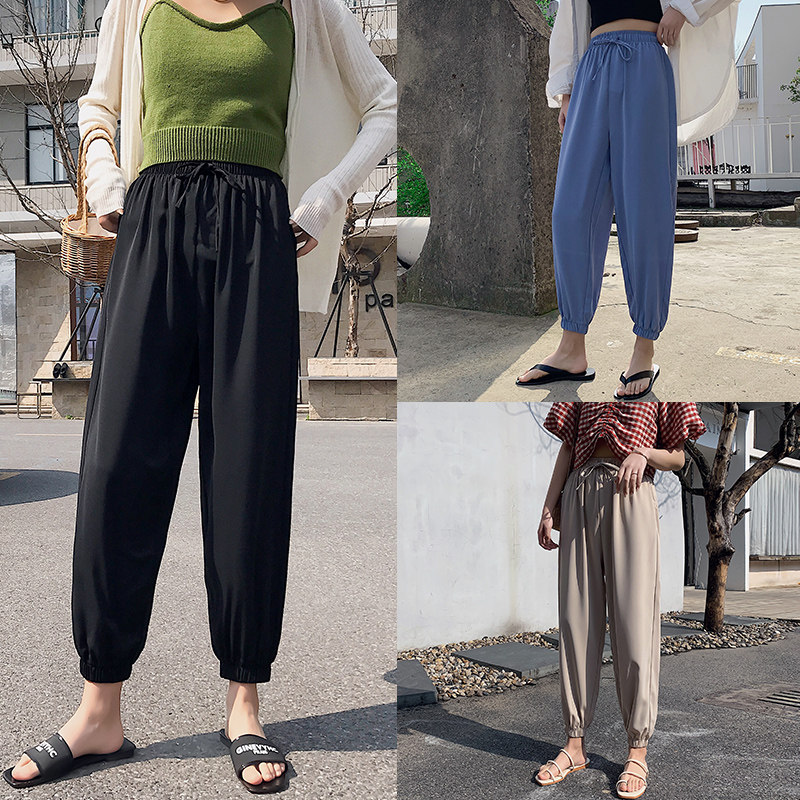 Шифоновая подсветка пола, фонарь, тонкие штаны, шелковое средство от комаров, оверсайз, высокая талия, свободный крой, защита от солнца