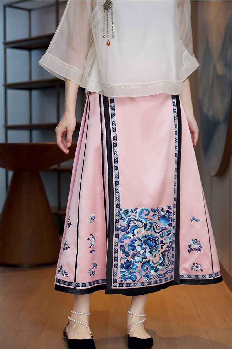 Летняя шелковая ретро юбка, А-силуэт, китайский стиль