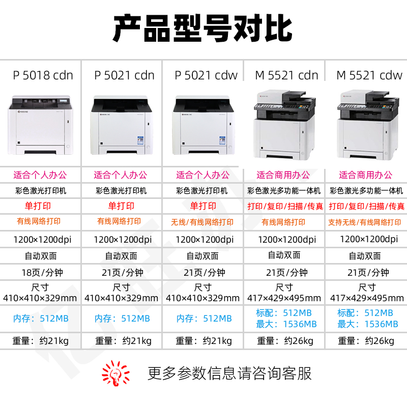 Kyocera PA2100CX/5021/M5521CDN Цветная лазерная сеть Офисная сеть Высоко -скорость с двойной скоростью с красной головкой