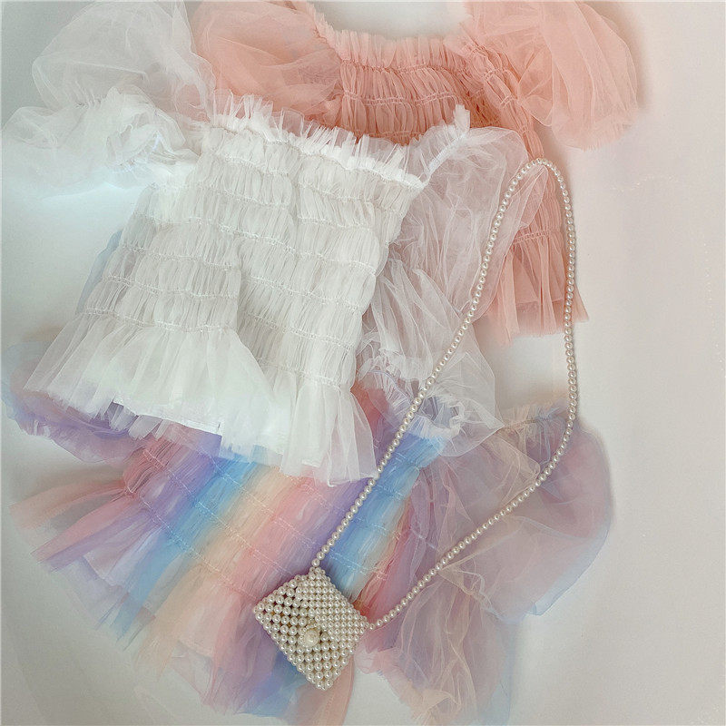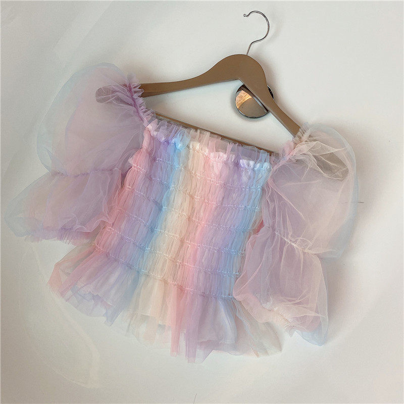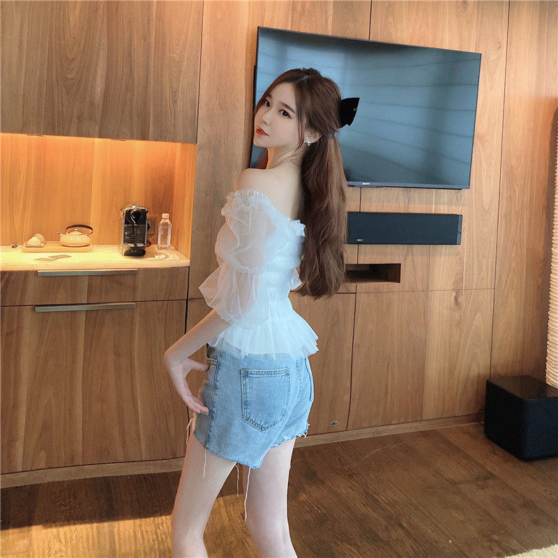 Кружевная летняя футболка, популярно в интернете, высокая талия, по фигуре, 2020, квадратный вырез, рукава фонарики