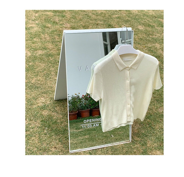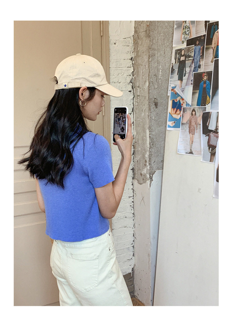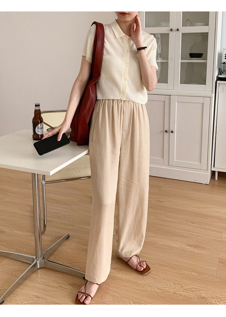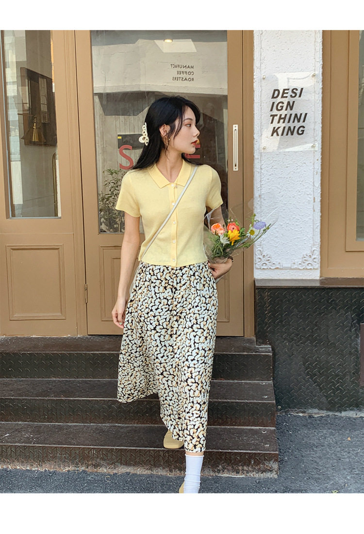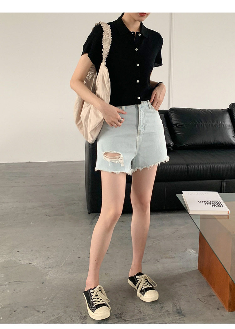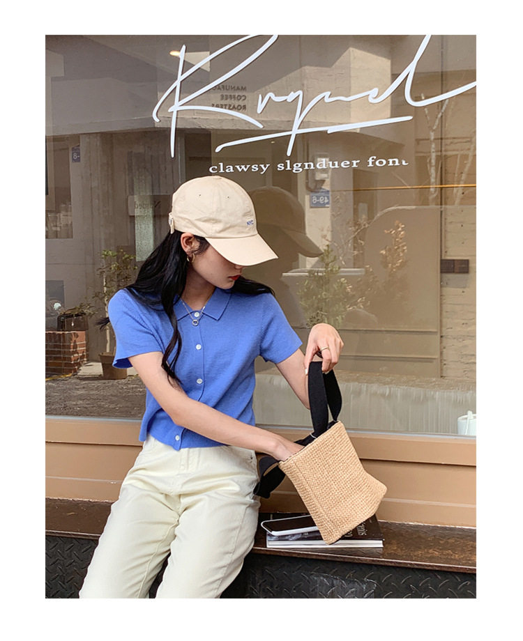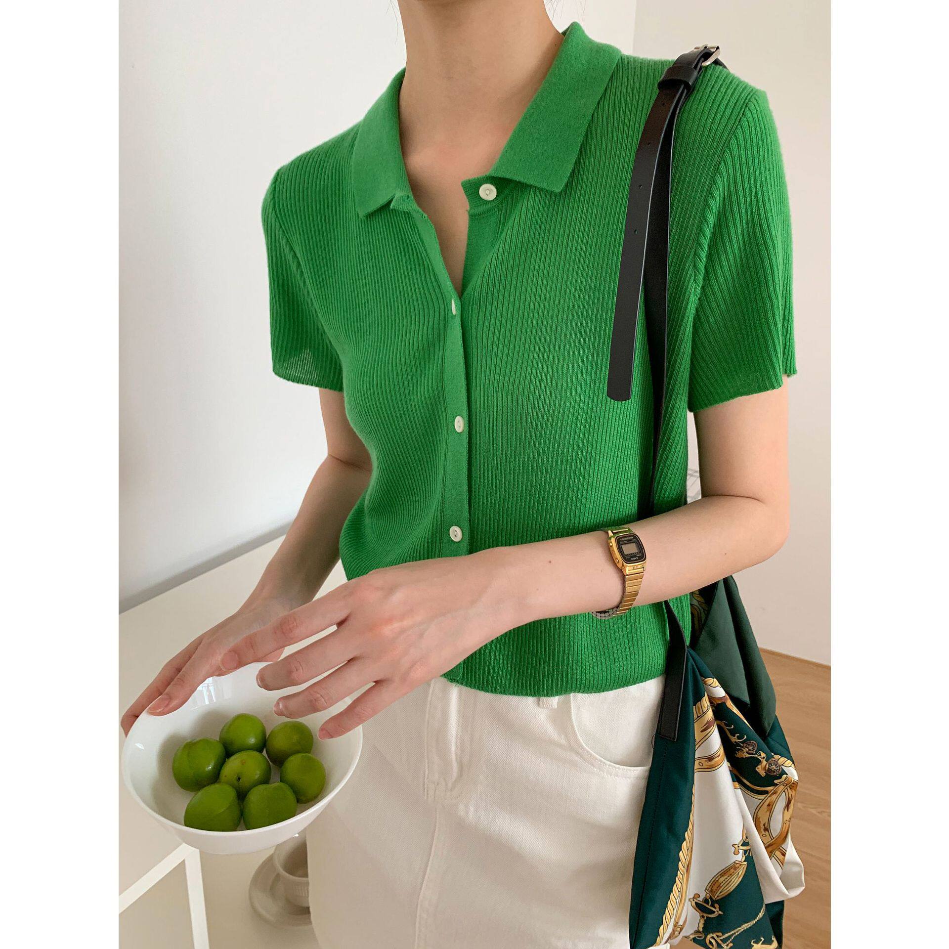 Дизайнерский короткий трикотажный кардиган, высокая талия, тренд сезона, французский стиль, воротник поло, короткий рукав