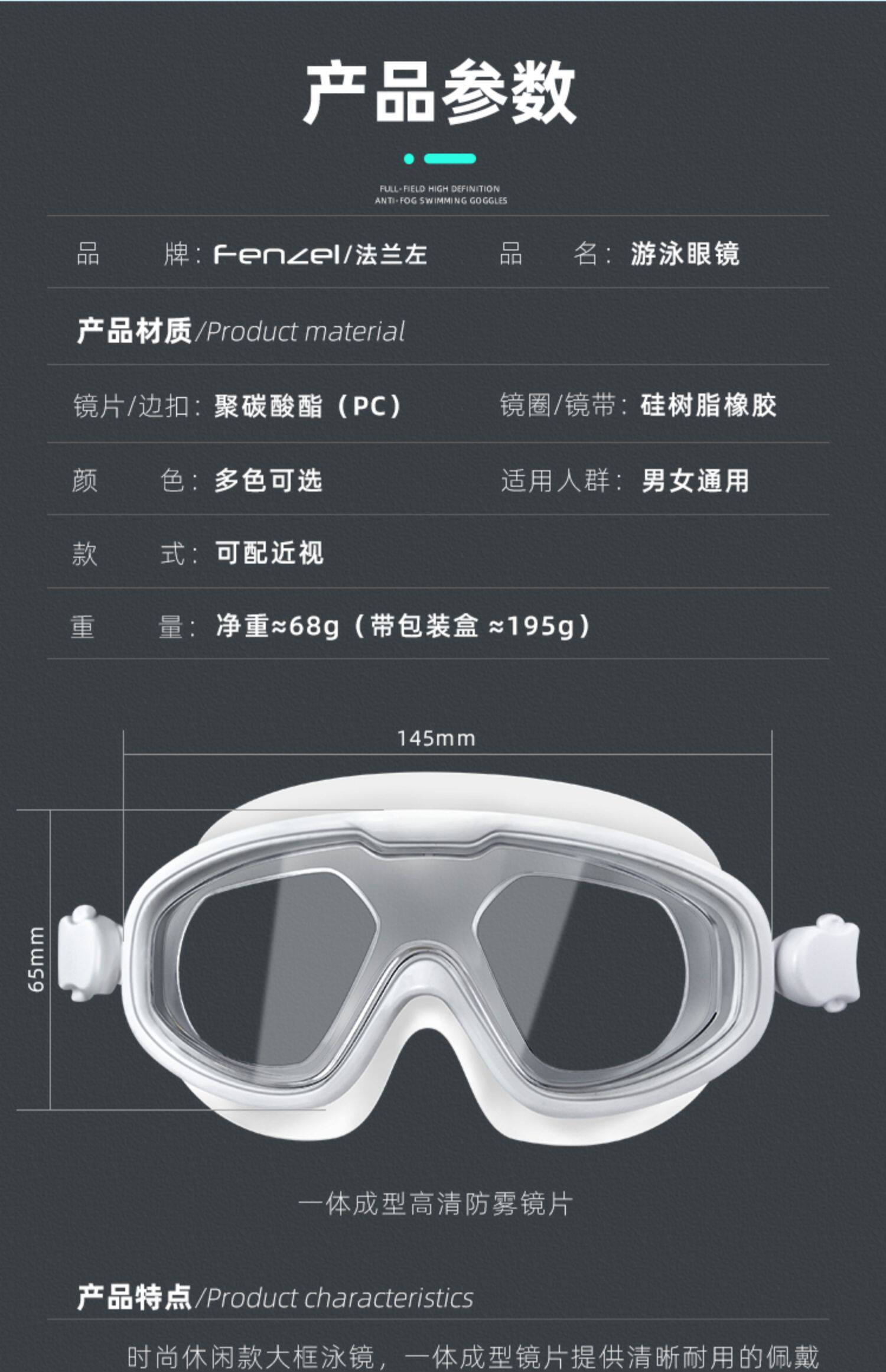 Френцель Франко -Зуо Лиандиан Большая рама HD HD Водонепроницаемое мужское зеркало для пляжа для взрослого пляжа зеркало