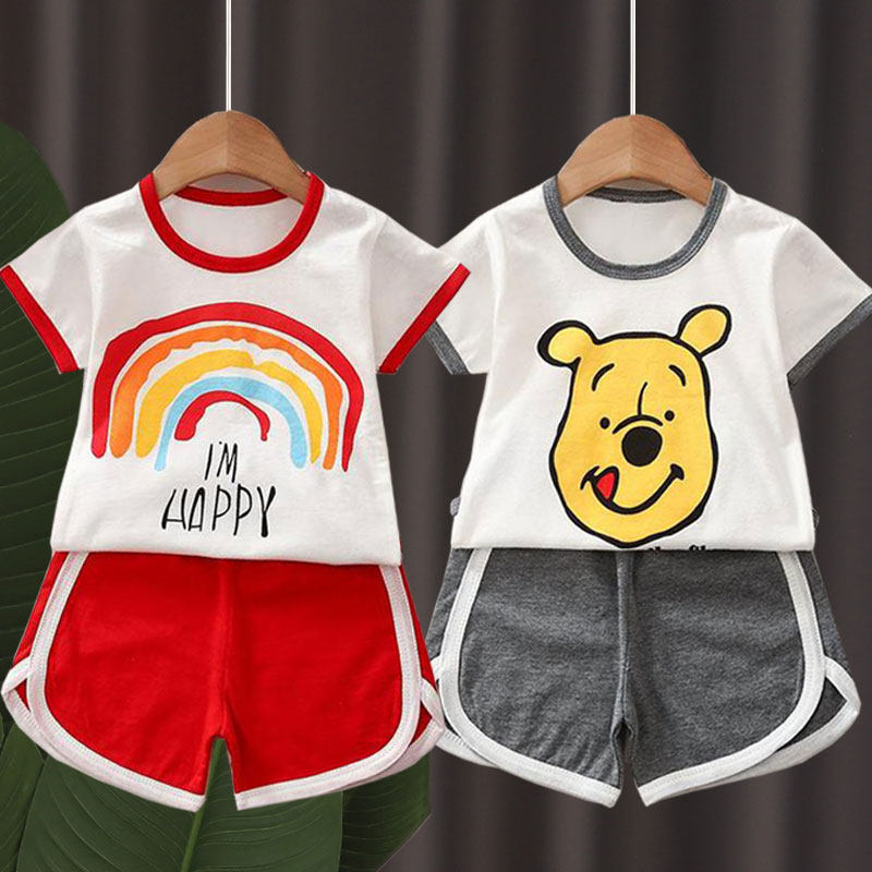Летние детские нарукавники, хлопковый комплект, шорты подходит для мужчин и женщин, футболка, детская одежда, коллекция 2021, в корейском стиле