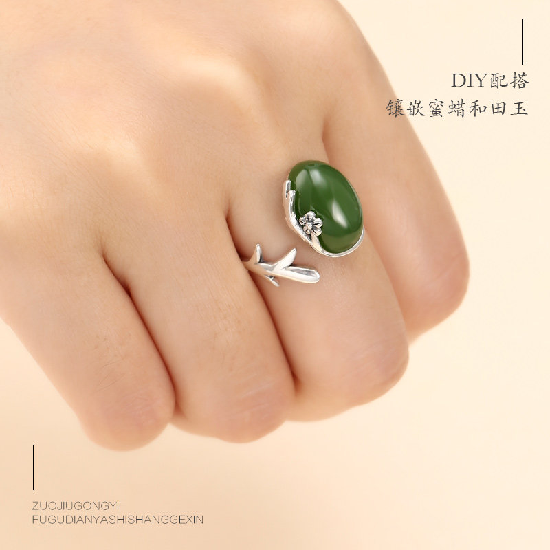 Бамбуковое ретро обручальное кольцо из воскового агата, серебро 925 пробы
