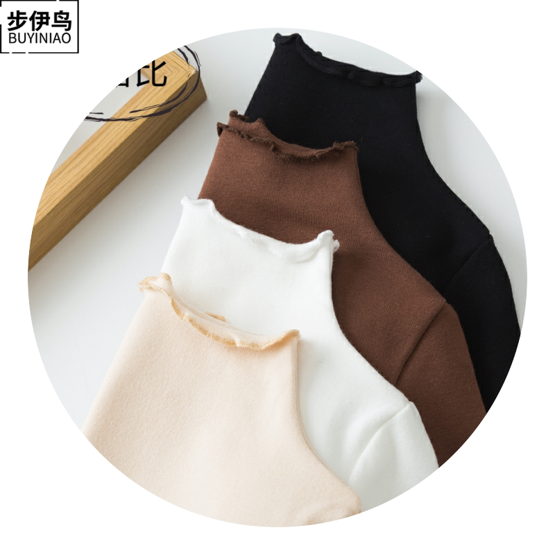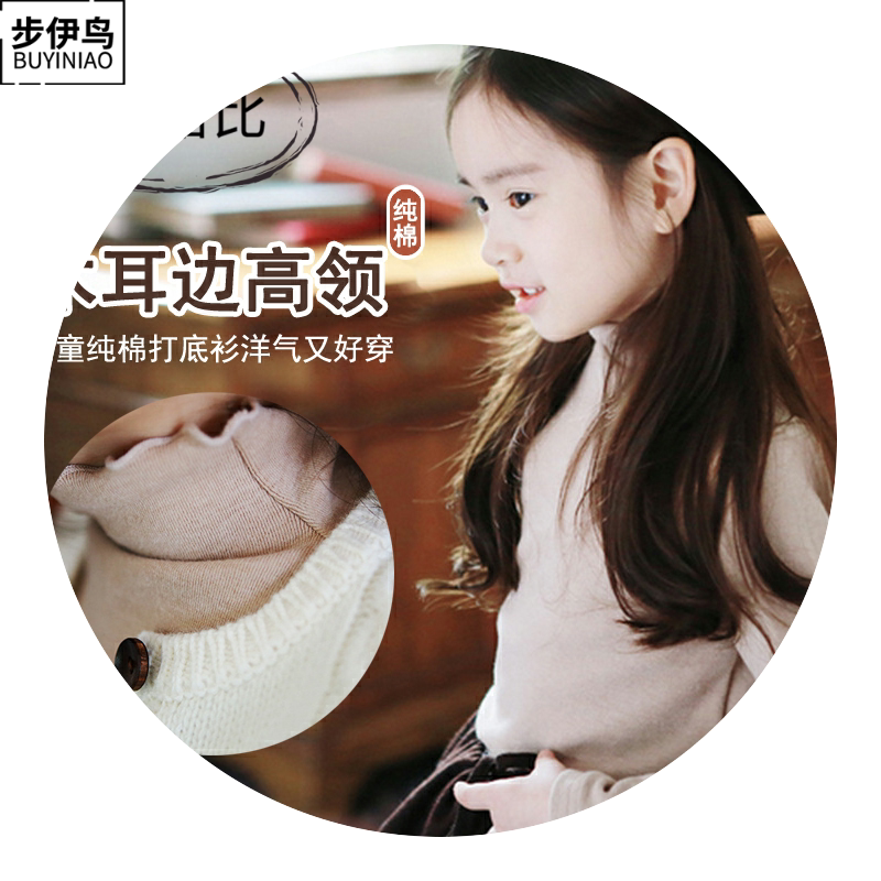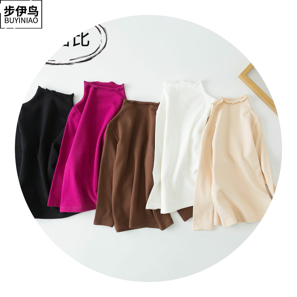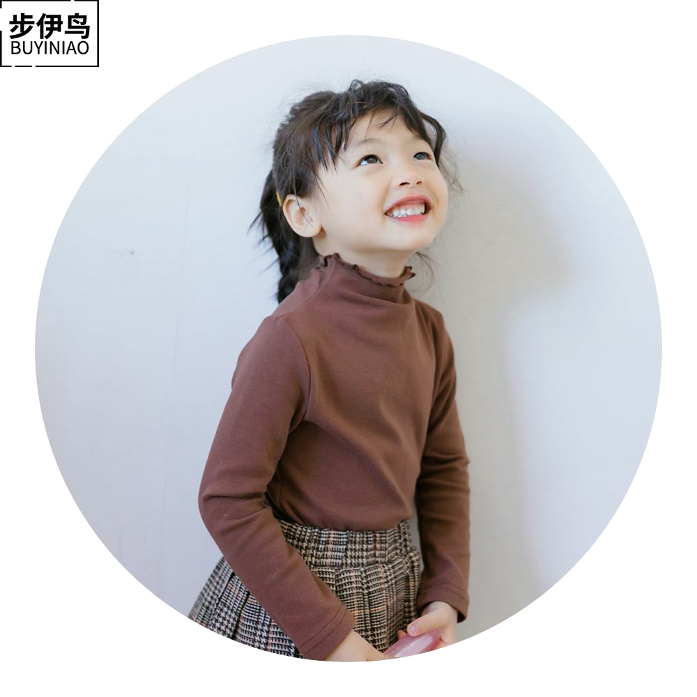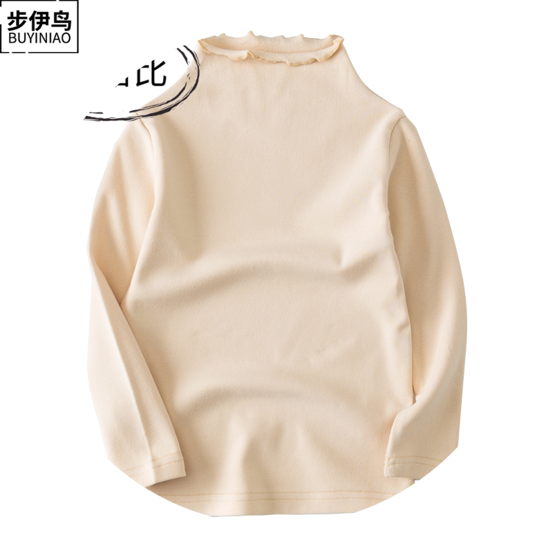 步伊鸟 Базовый приятный телу осенний детский белый лонгслив, высокий воротник, в западном стиле