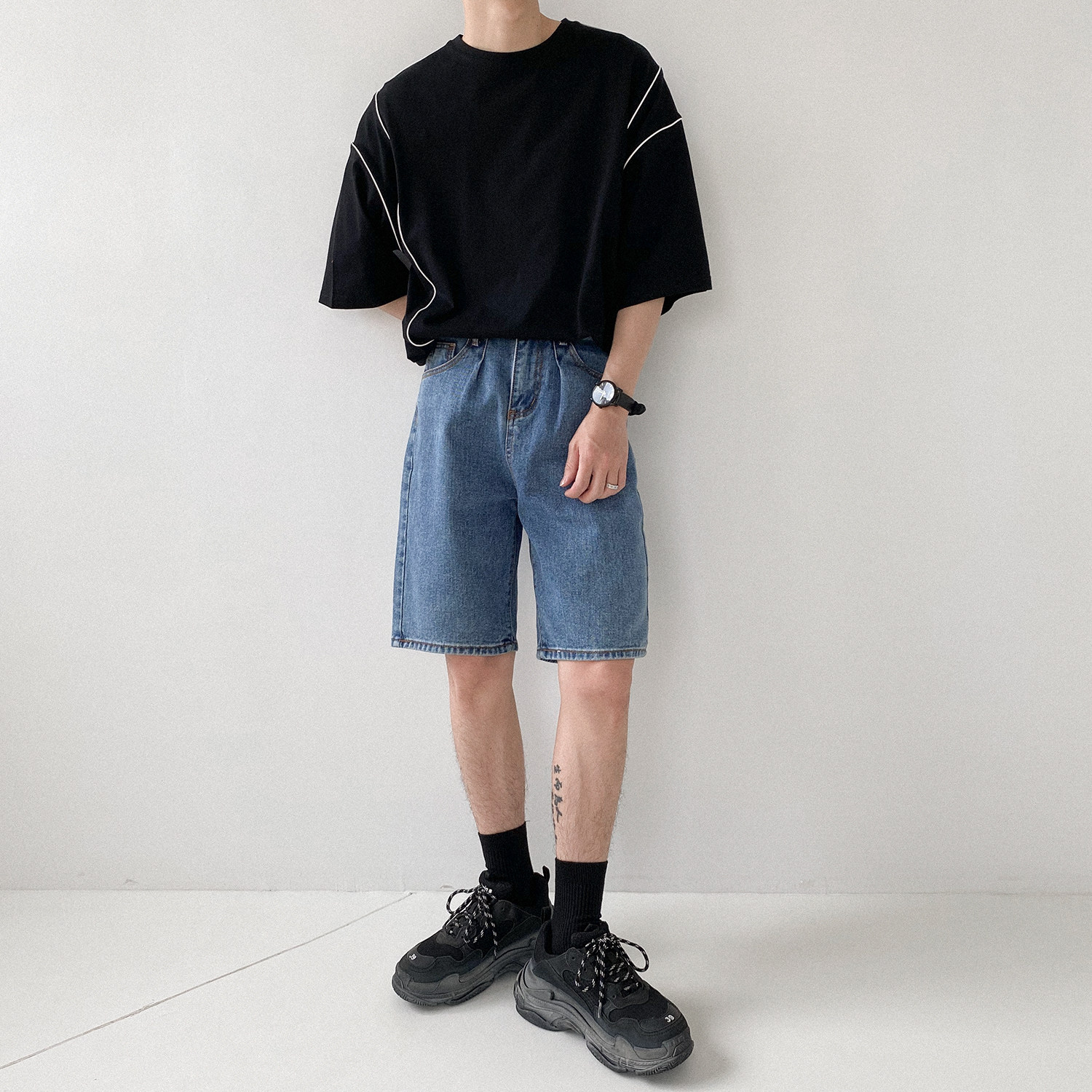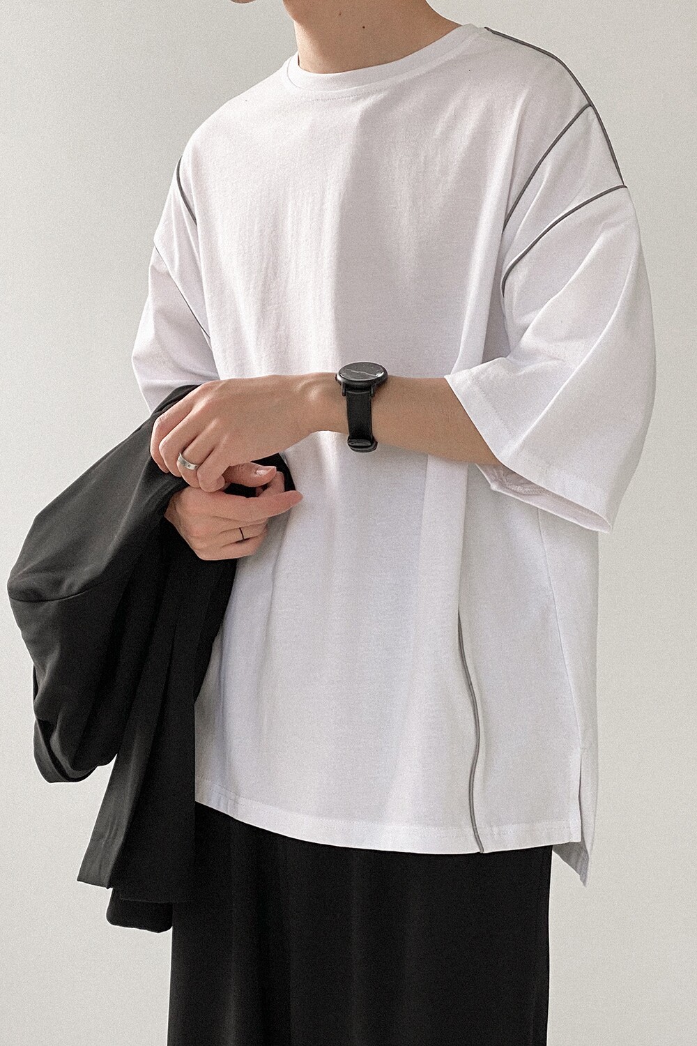 Трехмерная светоотражающая брендовая футболка, человеческий датчик, оверсайз, короткий рукав, в корейском стиле