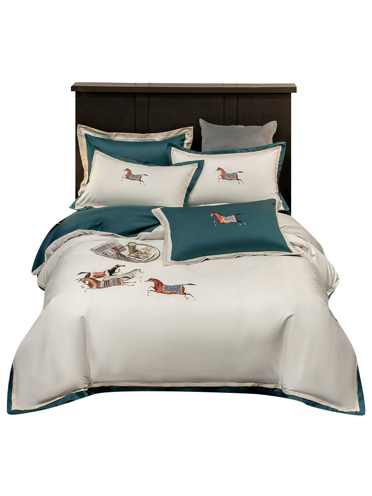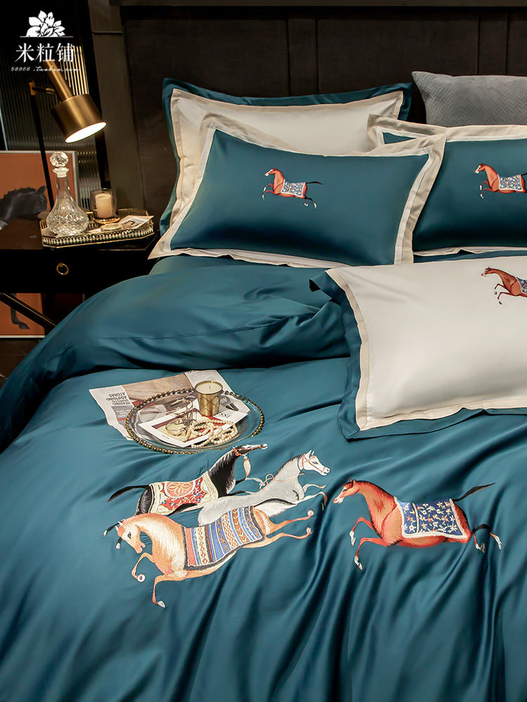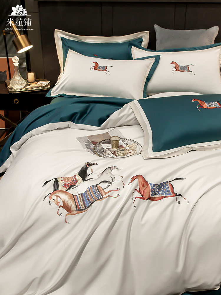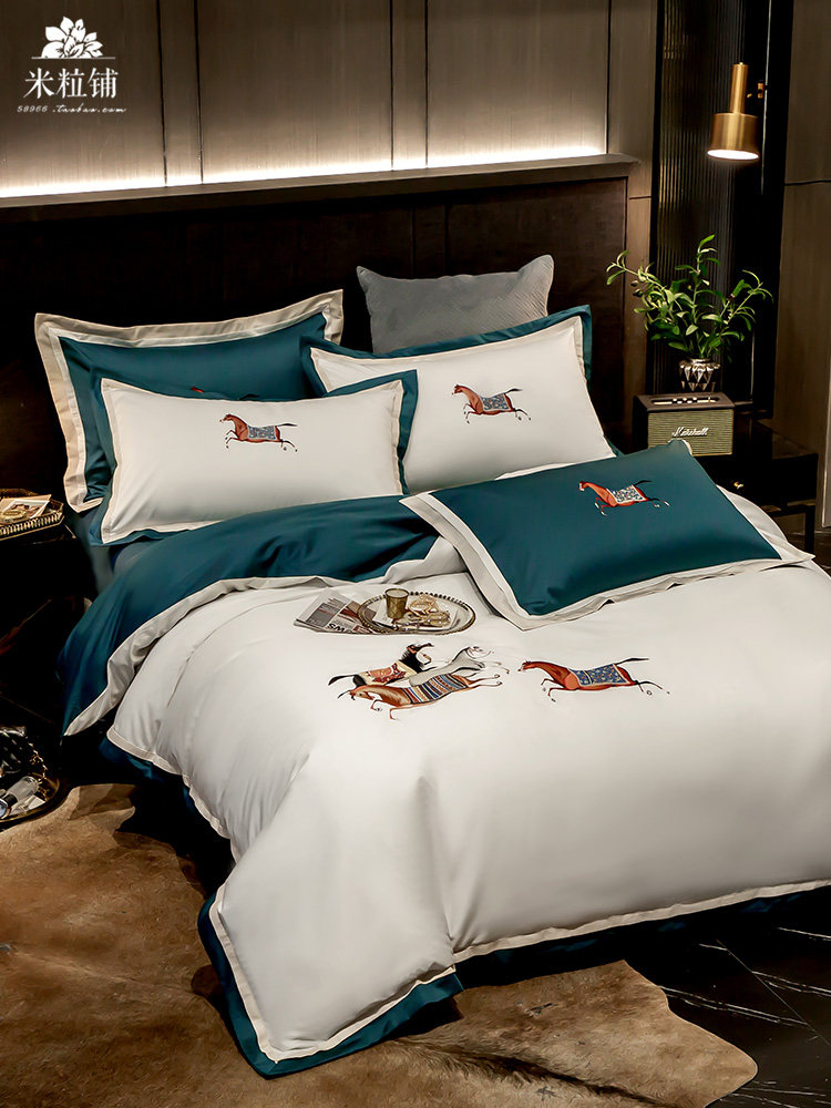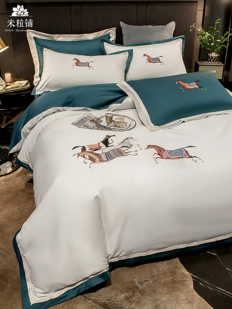Элитная пони, хлопковый комплект, покрывало для двоих, легкий роскошный стиль, с вышивкой, 60 шт, 4 предмета, в американском стиле