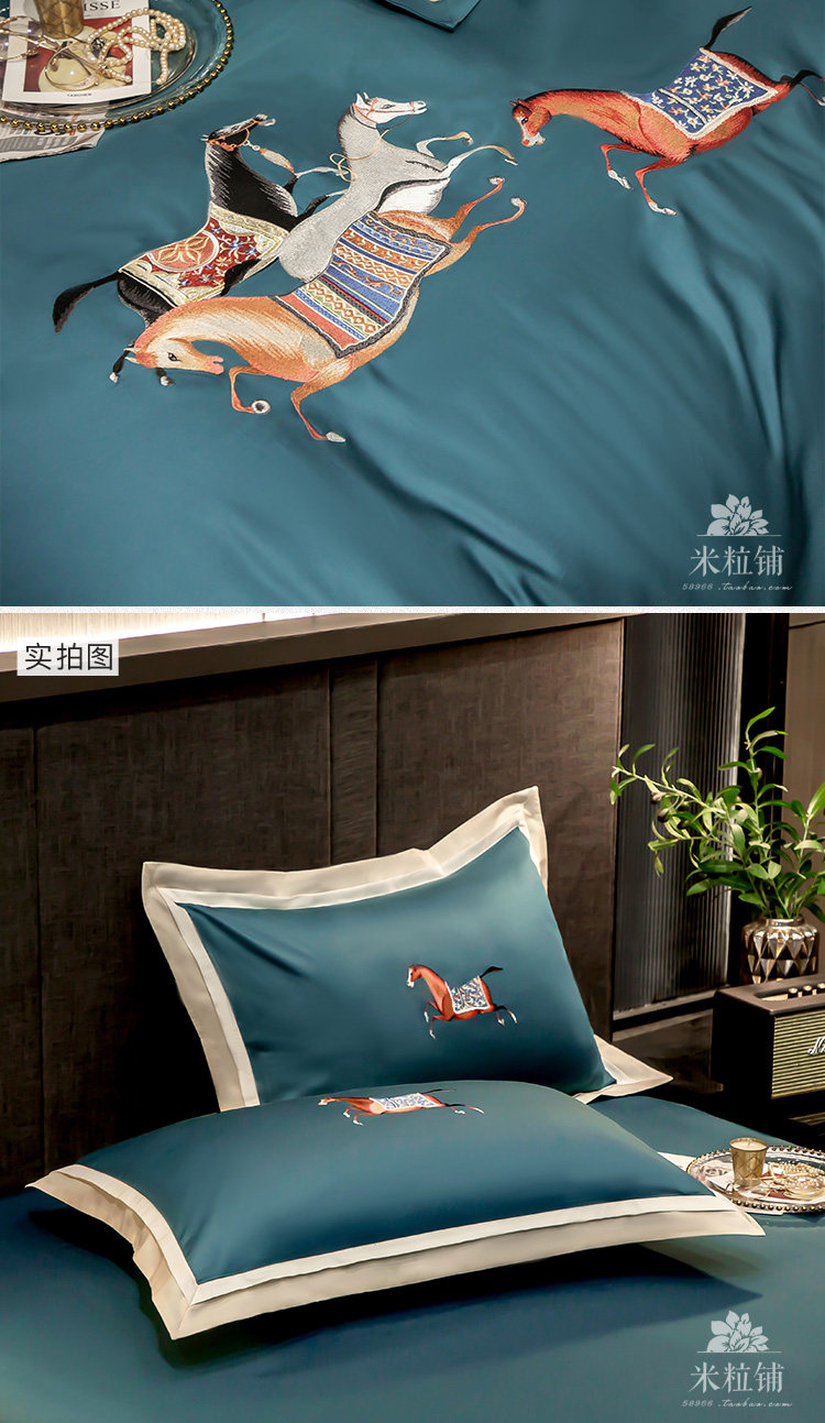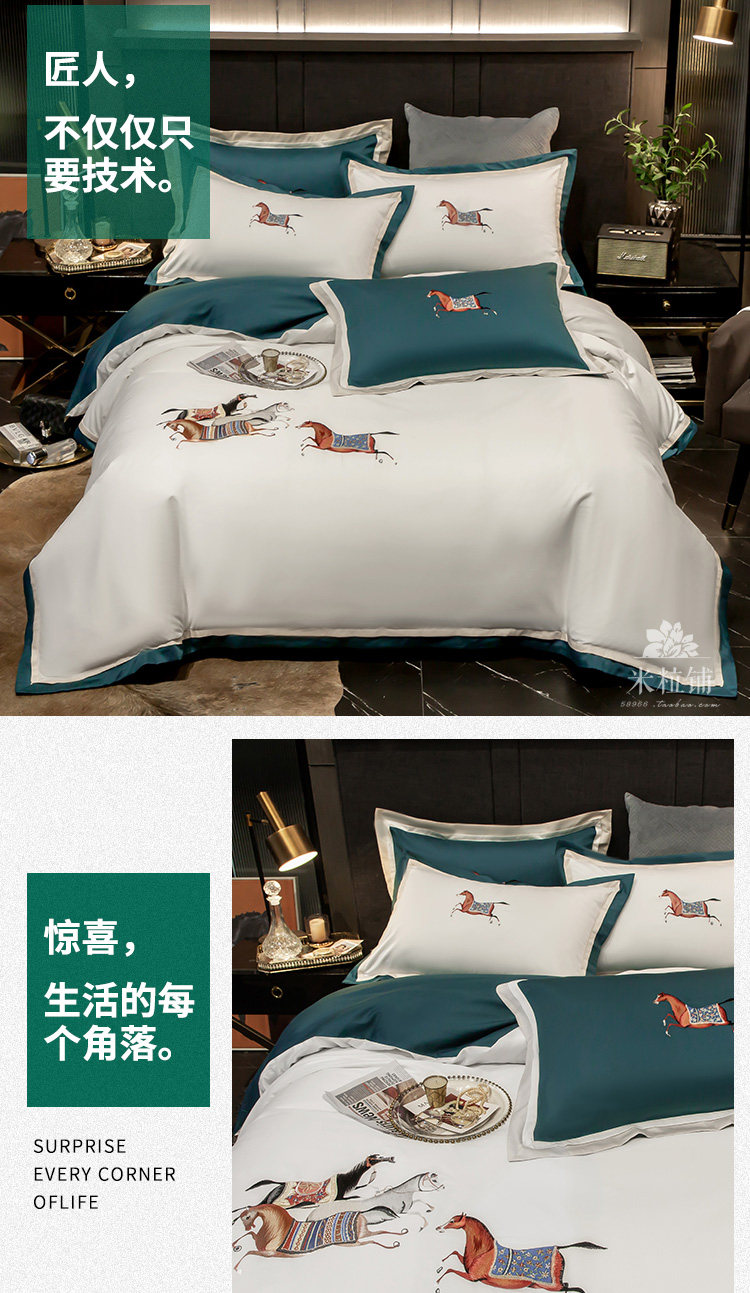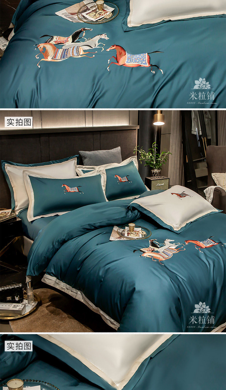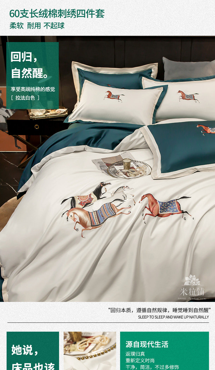 Элитная пони, хлопковый комплект, покрывало для двоих, легкий роскошный стиль, с вышивкой, 60 шт, 4 предмета, в американском стиле