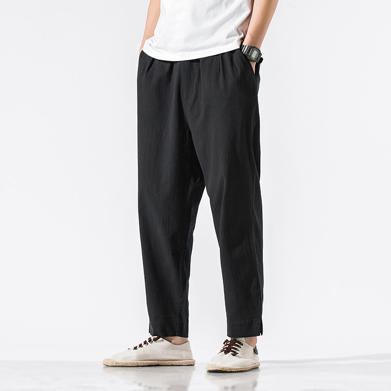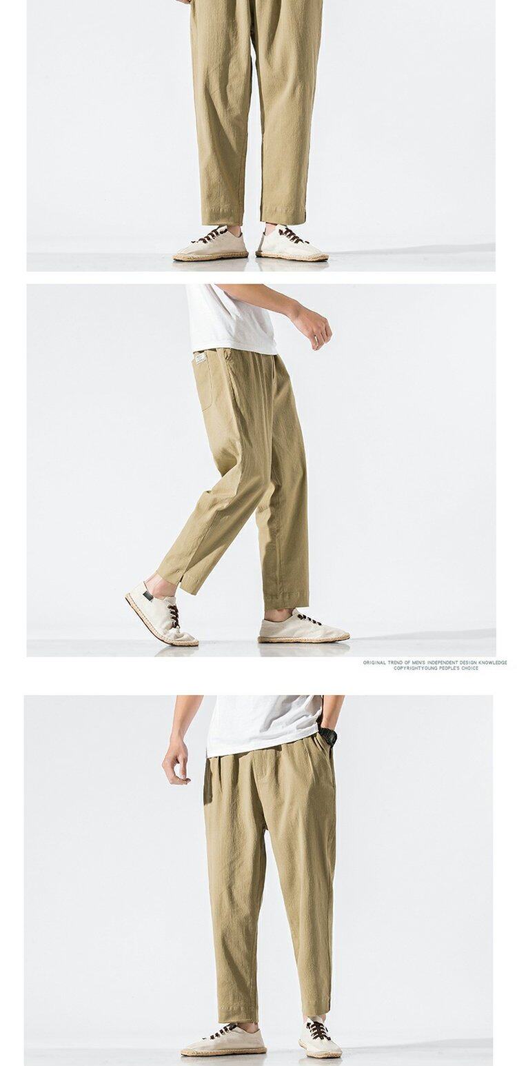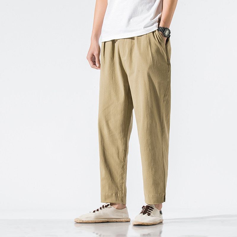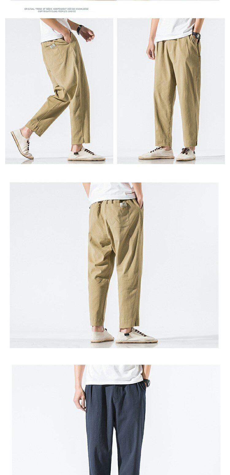 Однотонные ретро штаны, из хлопка и льна, китайский стиль, большой размер, свободный прямой крой