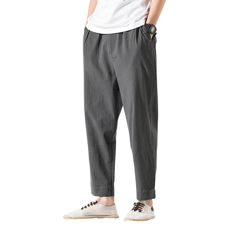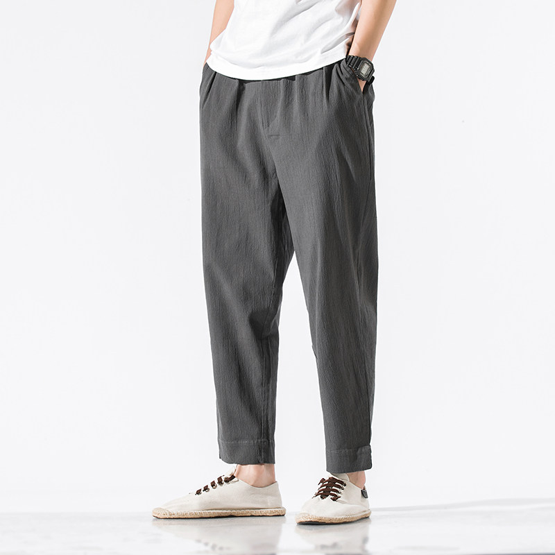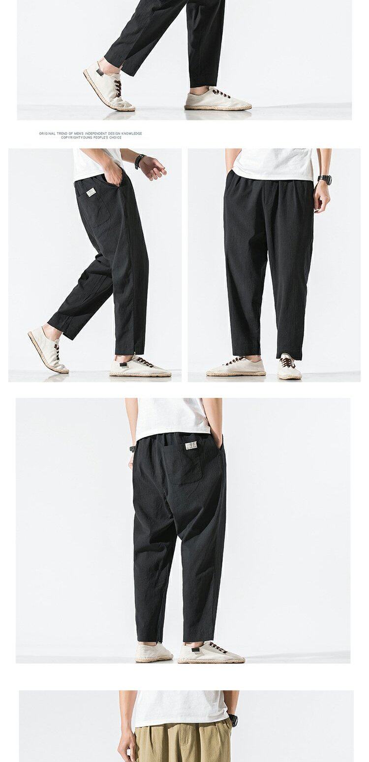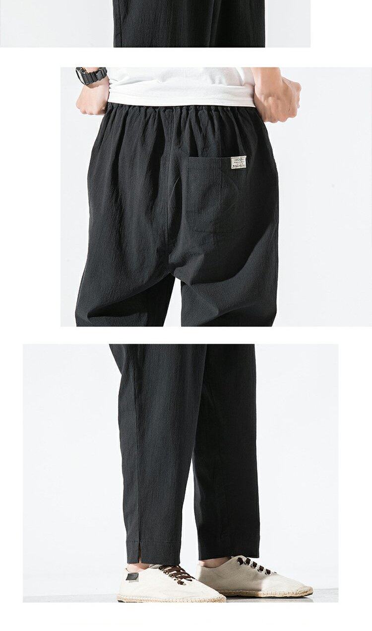Однотонные ретро штаны, из хлопка и льна, китайский стиль, большой размер, свободный прямой крой