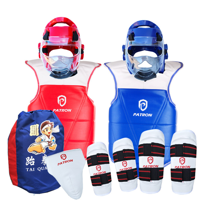Детское защитное снаряжение для тхэквондо, комплект, шлем для тренировок, маска, полный комплект, увеличенная толщина