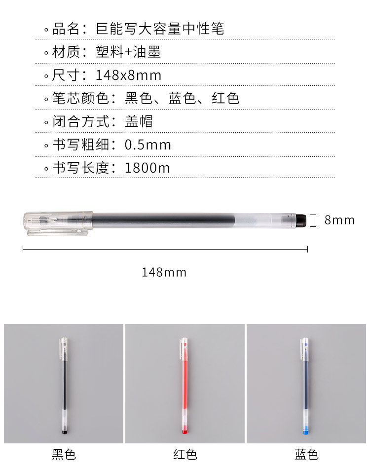 Вместительная и большая синяя ручка-роллер для школьников и студентов, 0.5мм