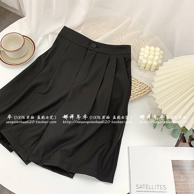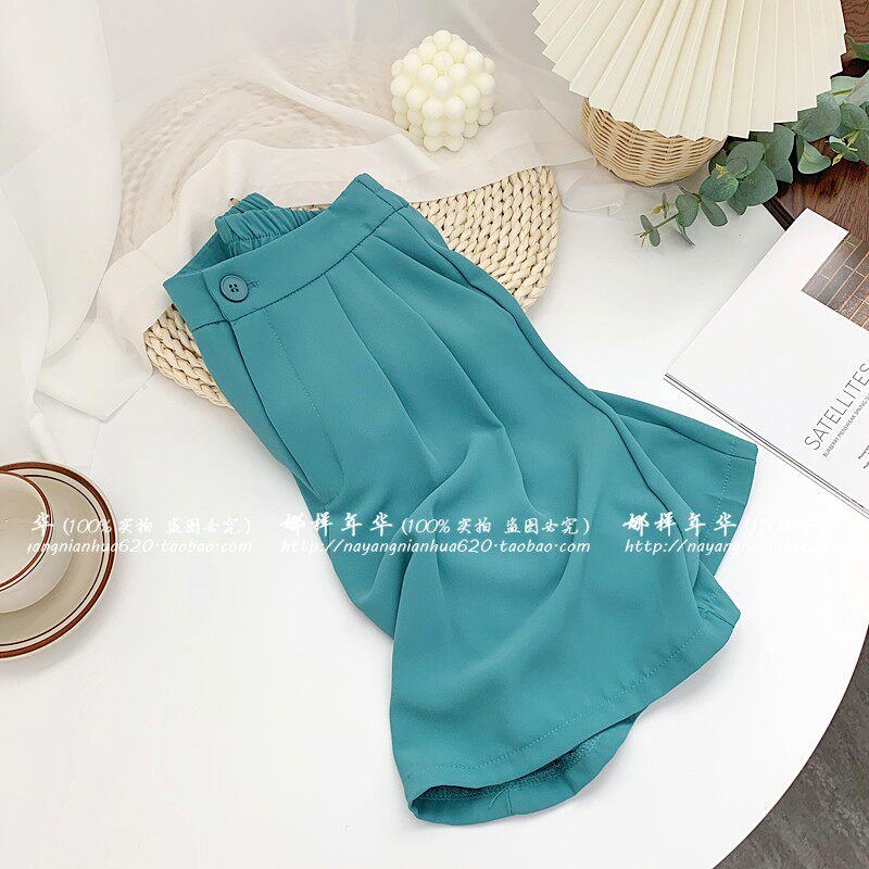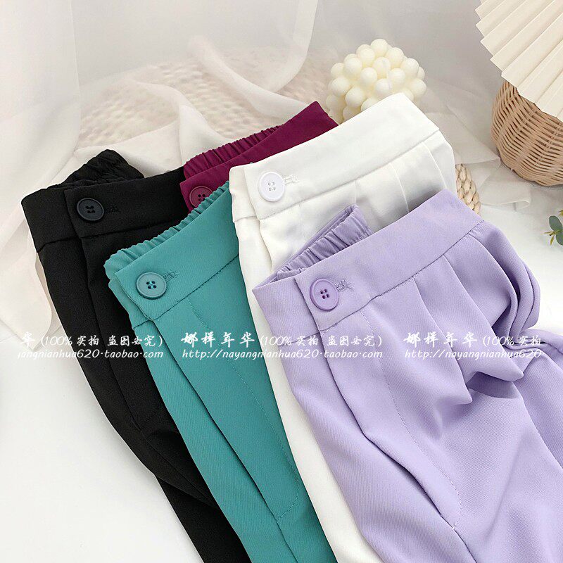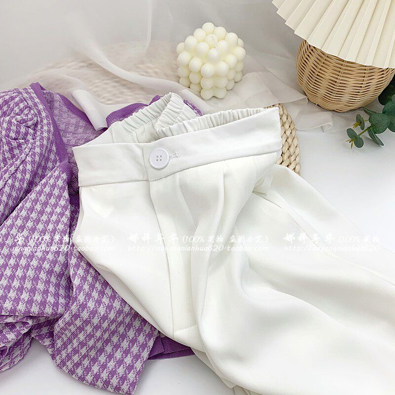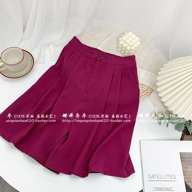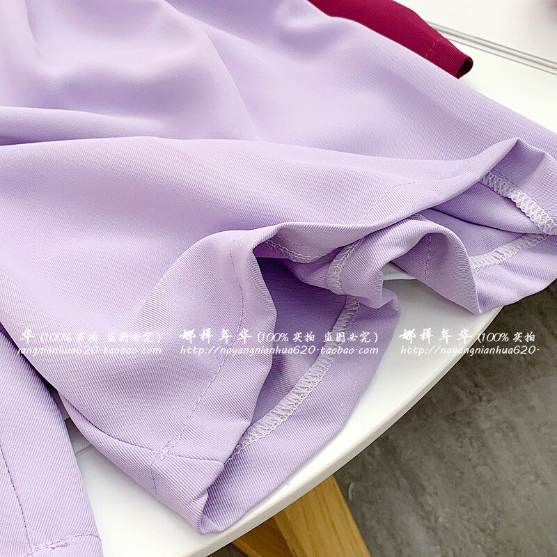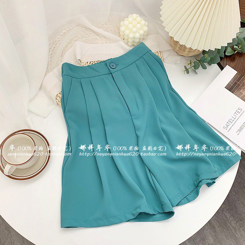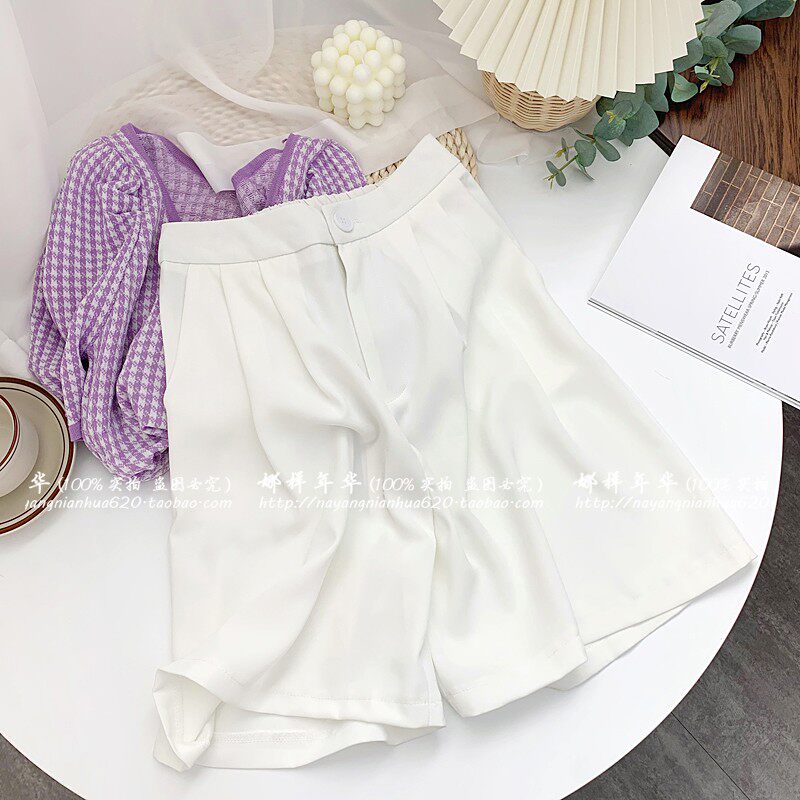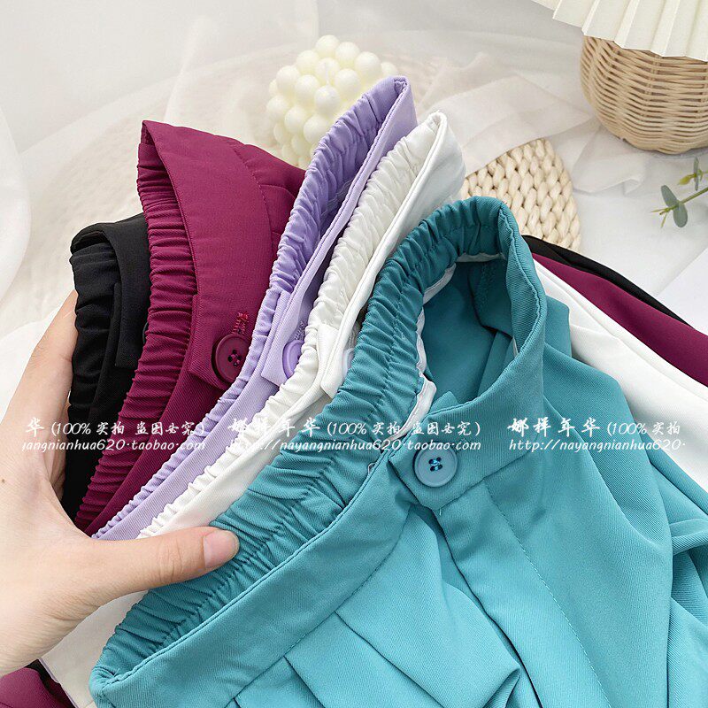 Сиреневый цветной шелковый костюм, шорты, штаны, повседневные брюки, высокая талия, свободный прямой крой