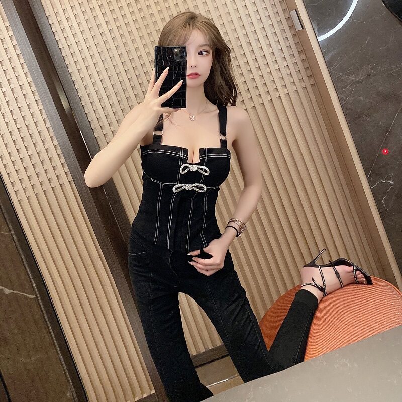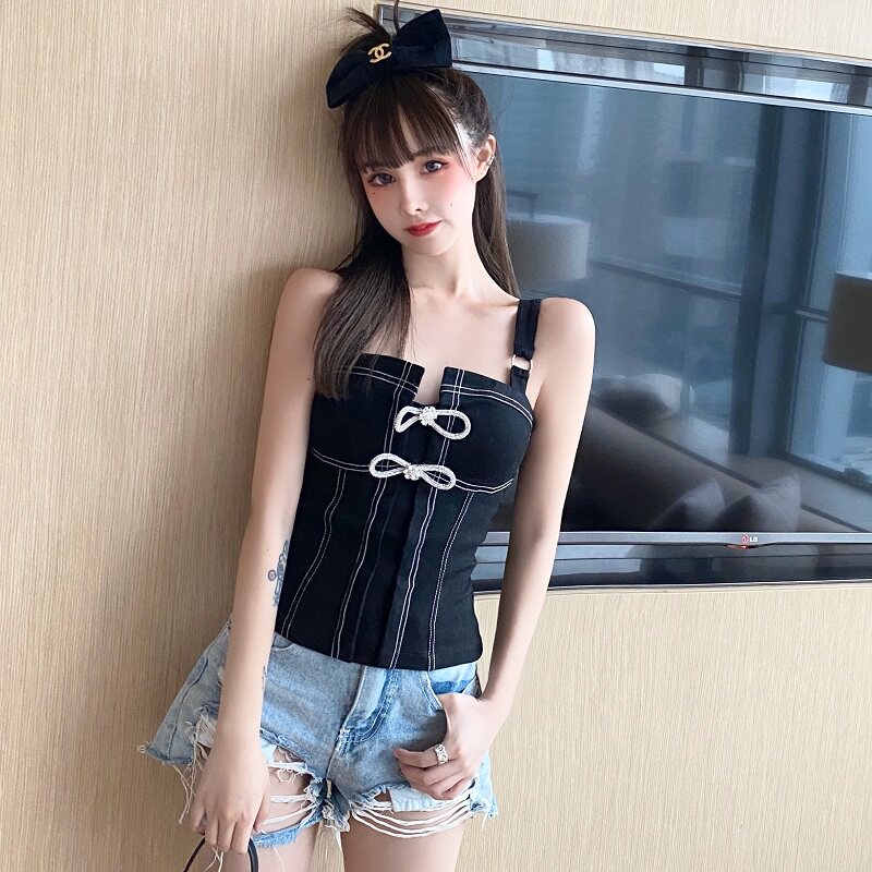 Черный бюстгальтер-топ с бантиком, летние подтяжки, эффект подтяжки, облегающий крой, 2020