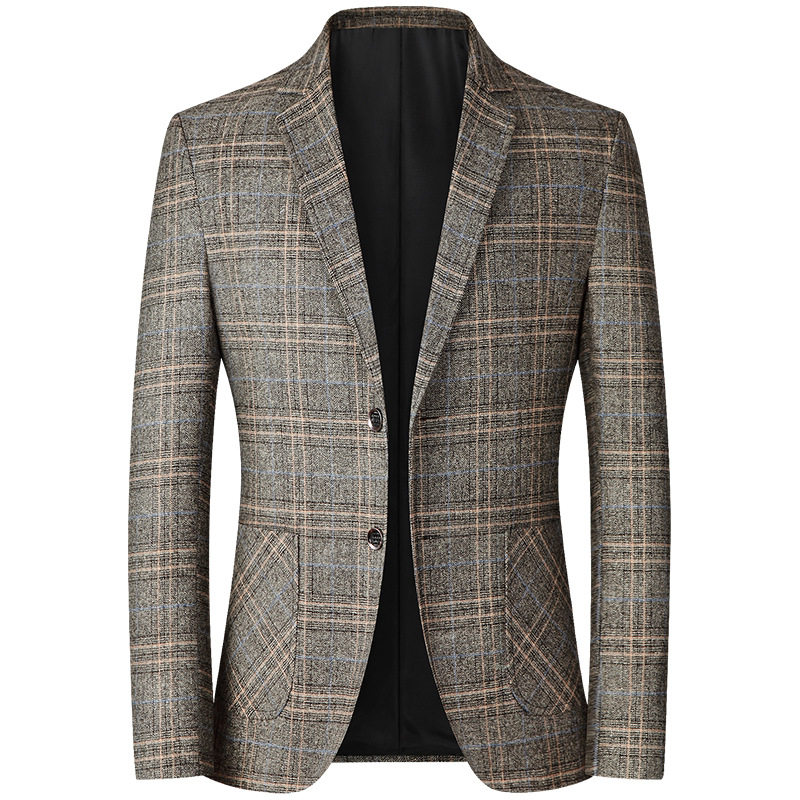 [Повседневный костюм] весенне-осенний мужской корейский тонкий костюм без железа, топ, британский клетчатый одинарный костюм, куртка