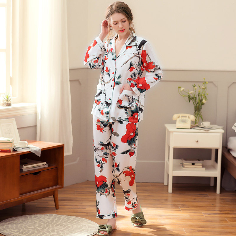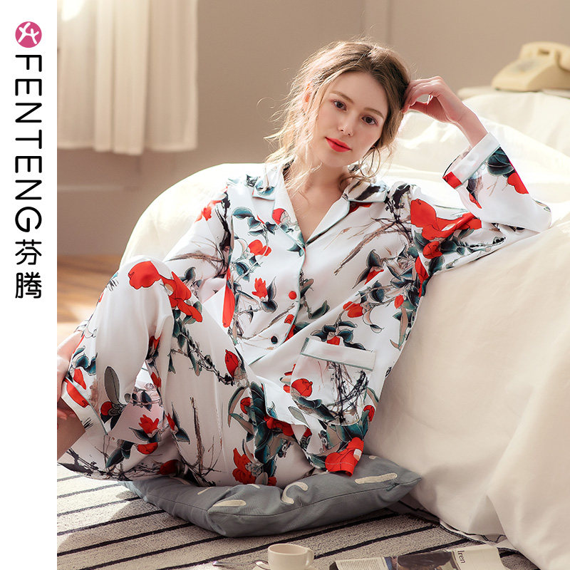 芬腾 Шелковая пижама, лонгслив, комплект, милый шелковый кардиган