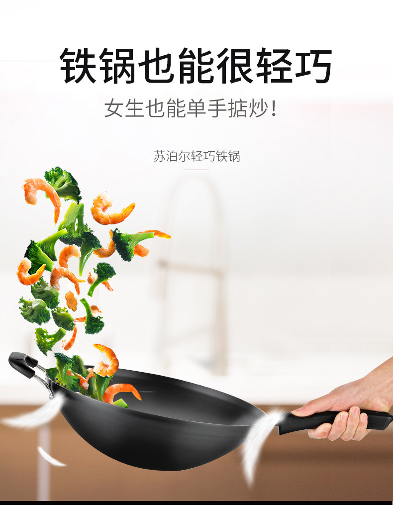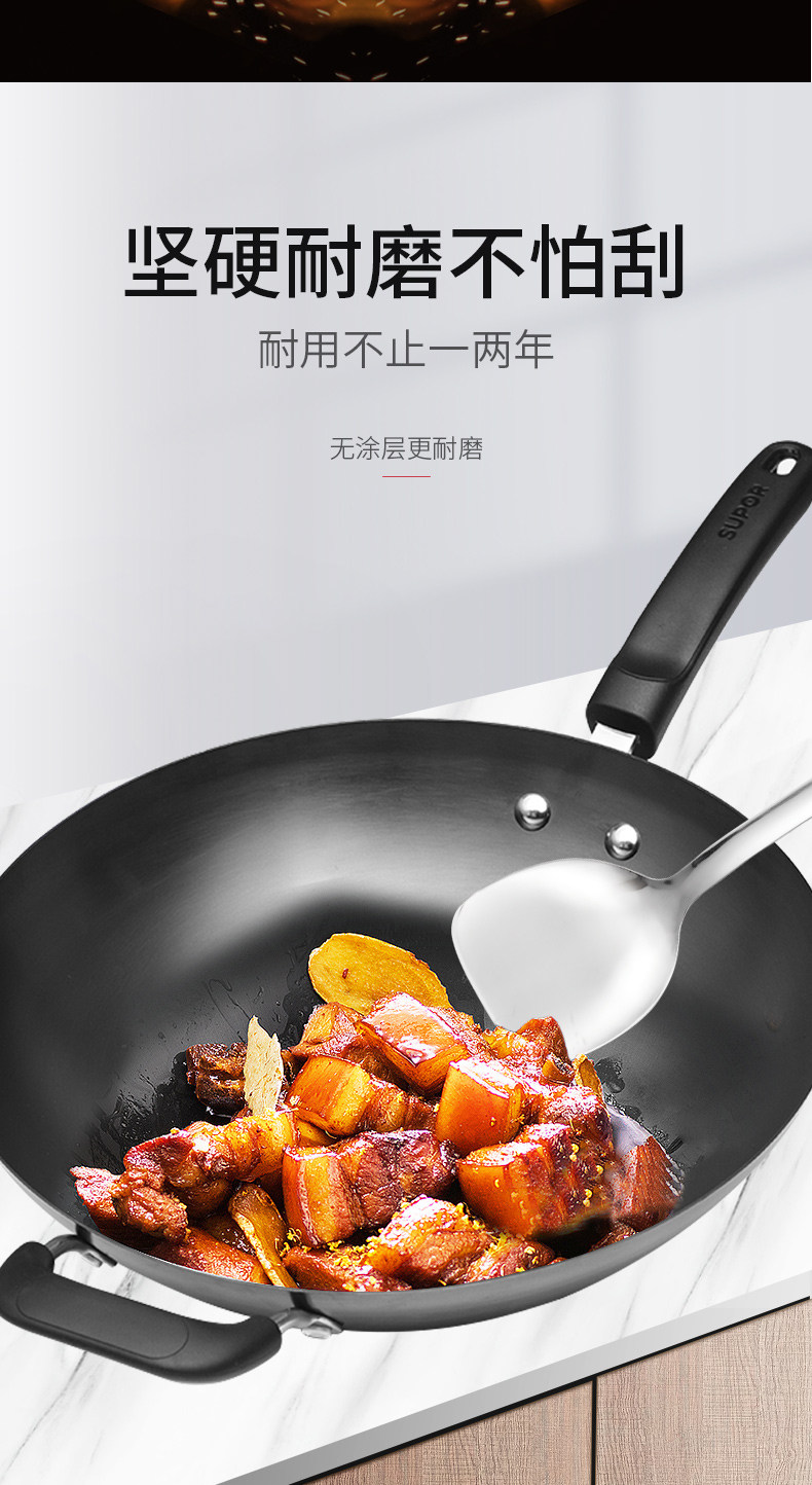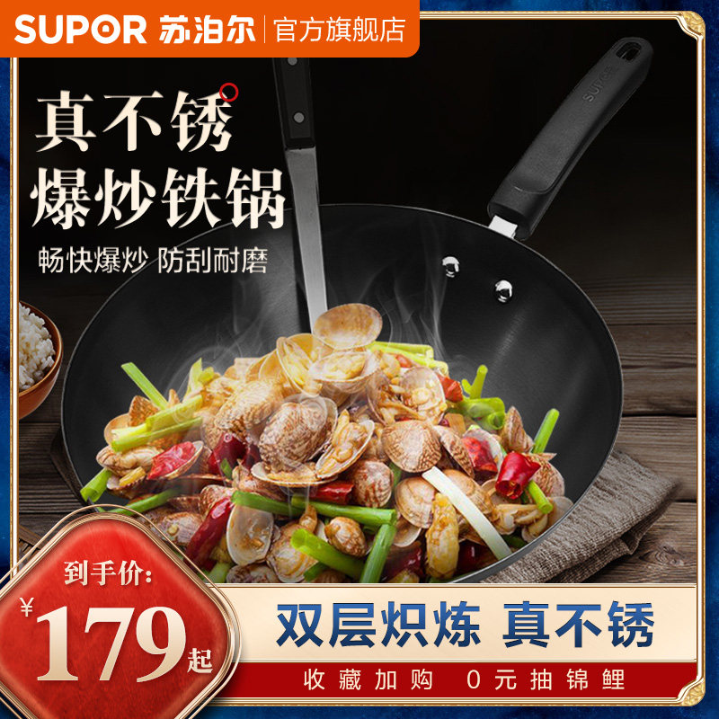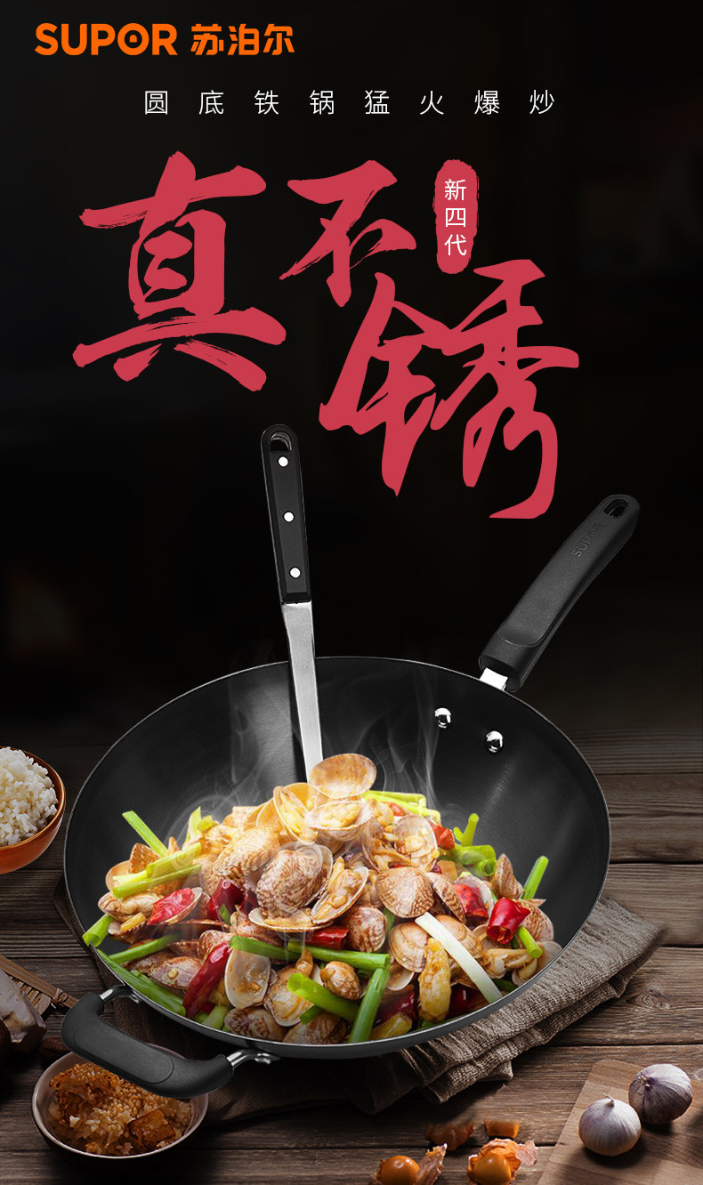 Supor Iron Pot без покрытия старой в стиле перемешивания -жареный горшок с жареным кастрюлем.