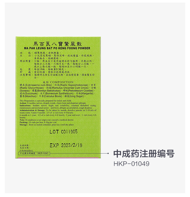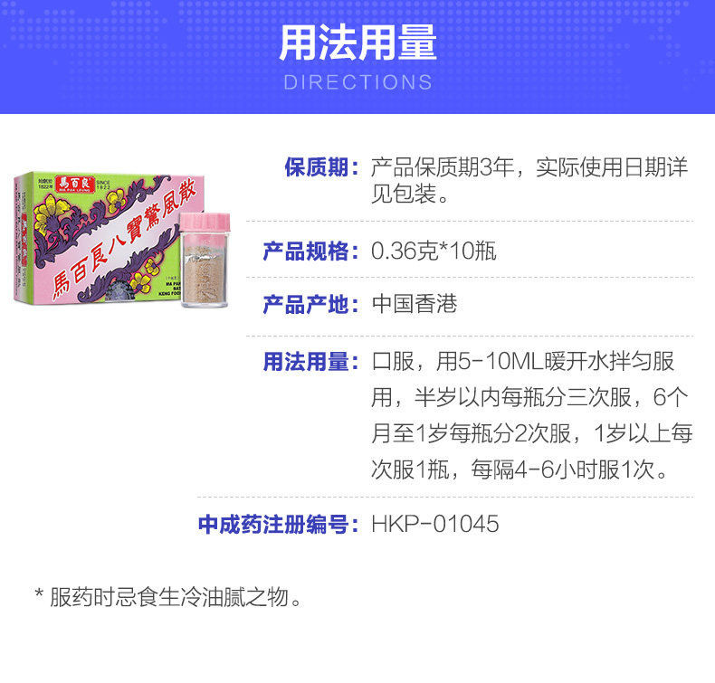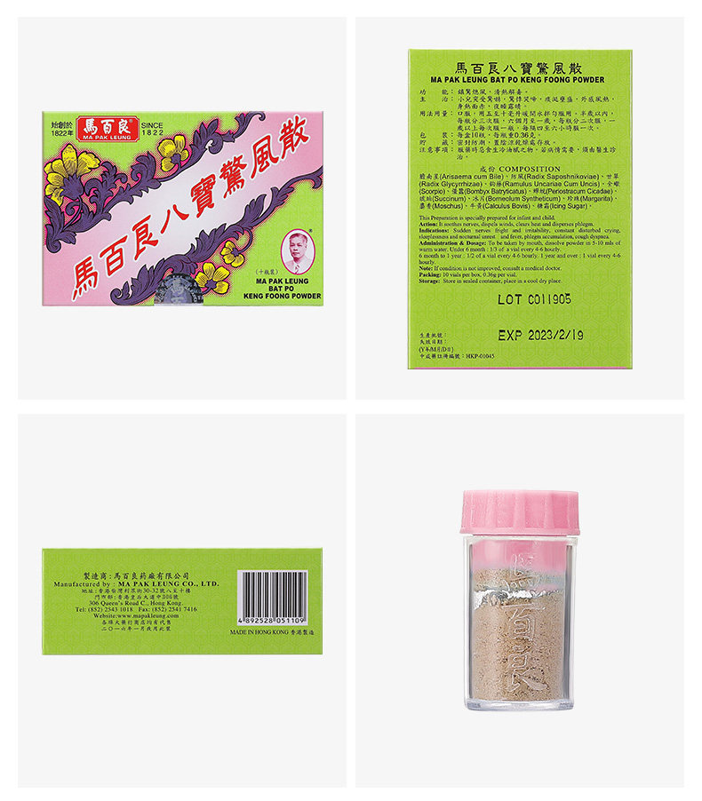 Гонконг, Ма -Бейлоан Бабао, шокирующий ветер, вождение ветра и успокаивающих детей, спать, не плакать, 10 бутылок/коробки