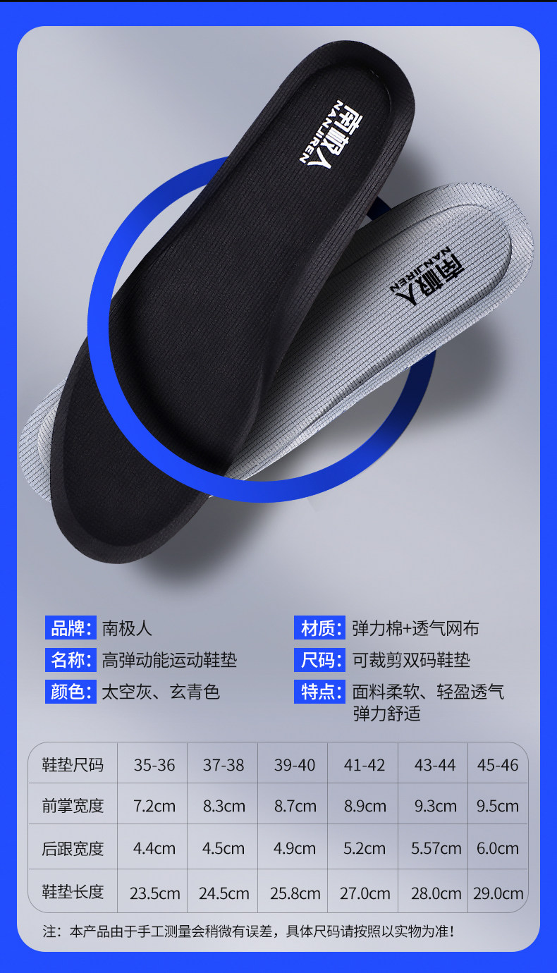 南极人 Дышащие баскетбольные амортизирующие эластичные стельки, впитывают пот и запах, мягкая подошва