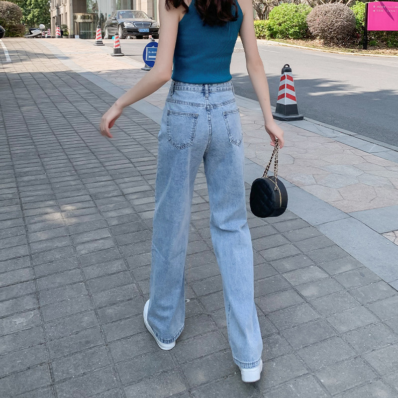Джинсы, весенние летние тонкие штаны, подходят для подростков, 2024 года, свободный прямой крой, высокая талия