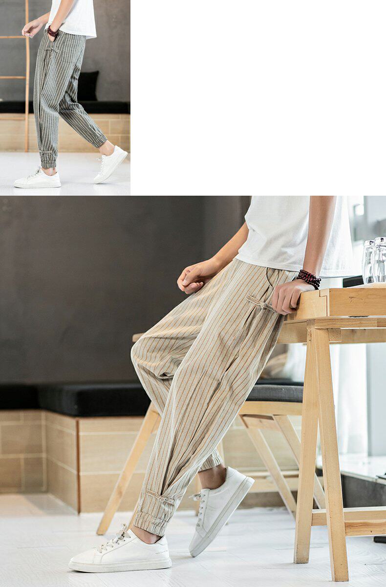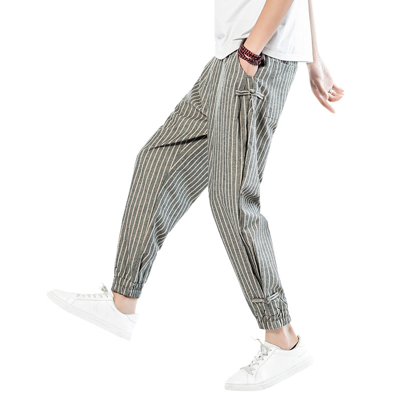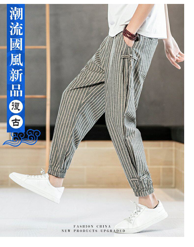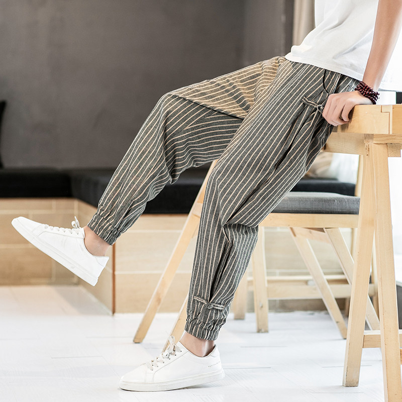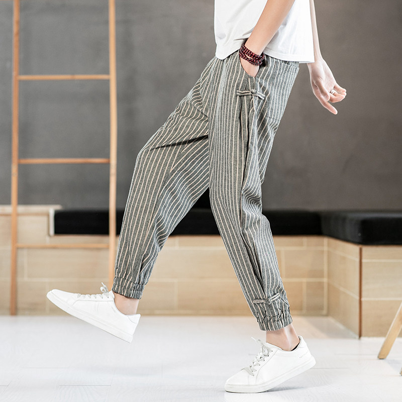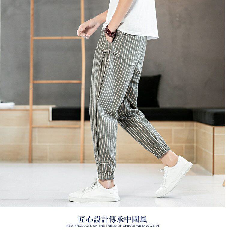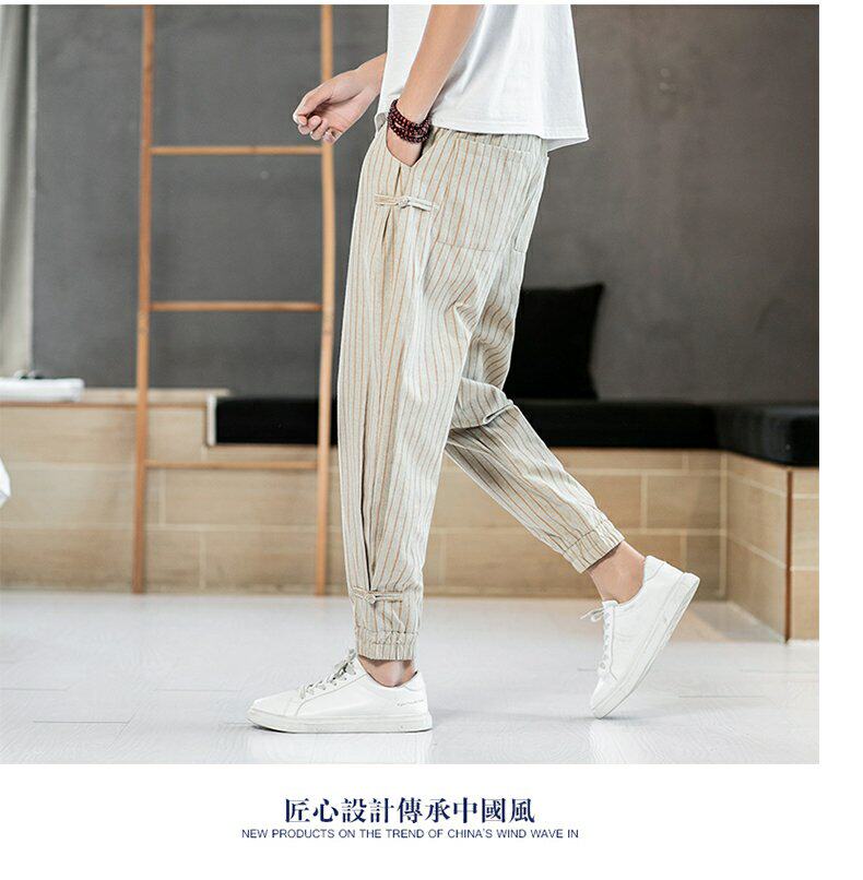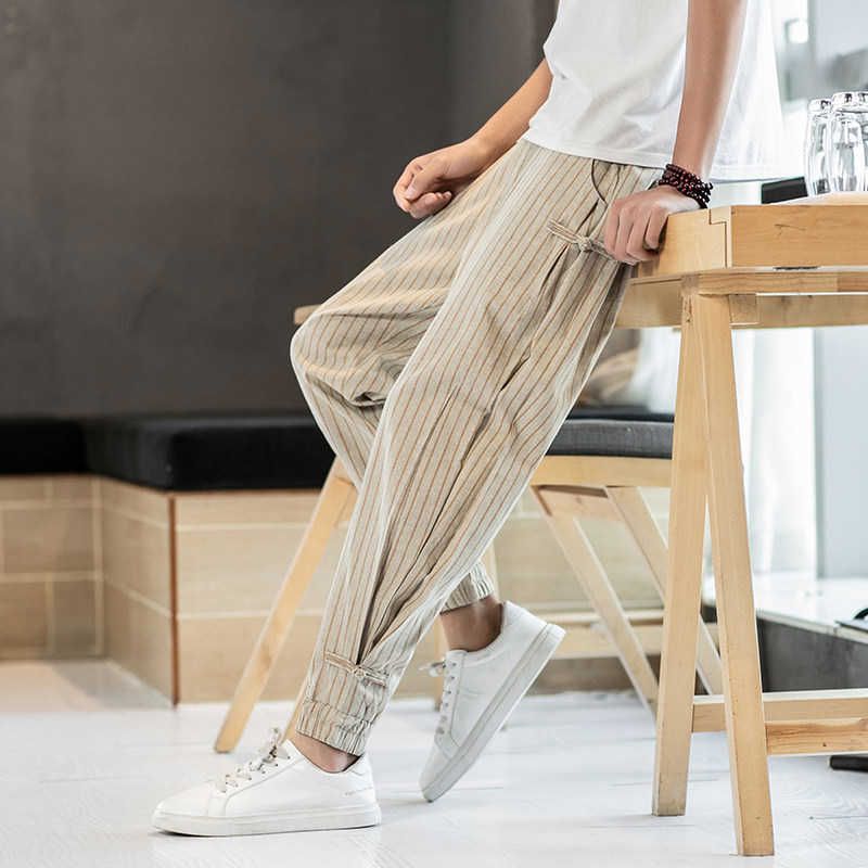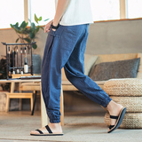Китайские летние тонкие штаны для отдыха, трендовая подсветка пола, фонарь, китайский стиль, из хлопка и льна