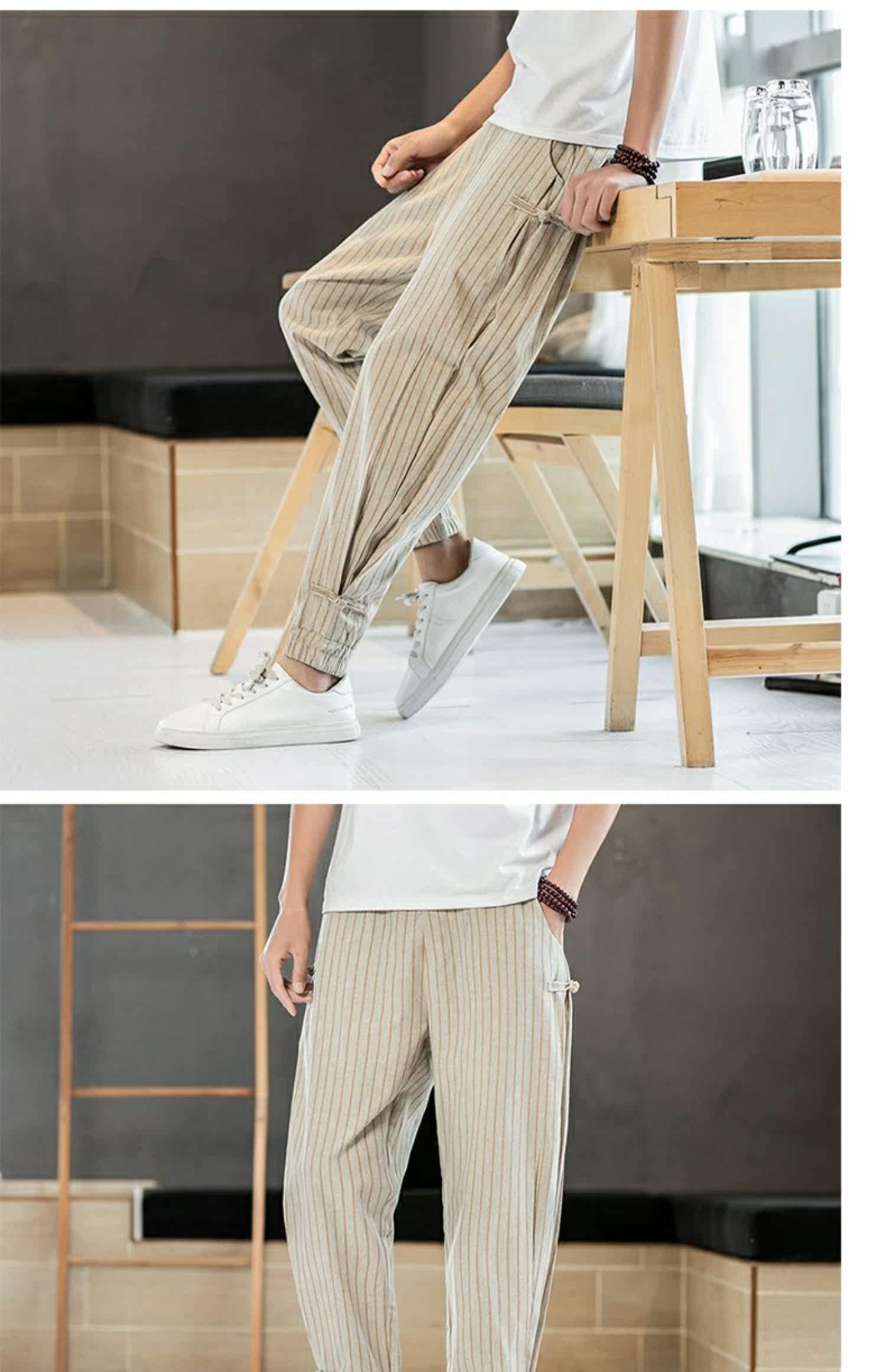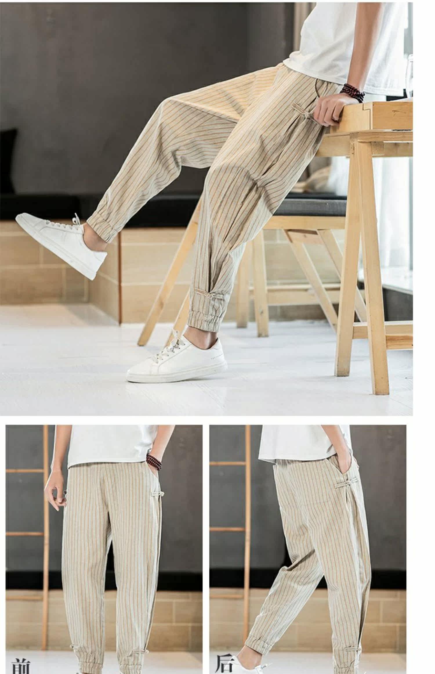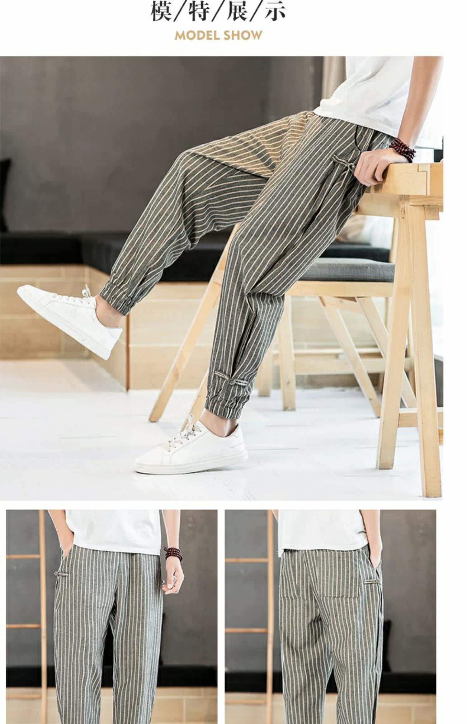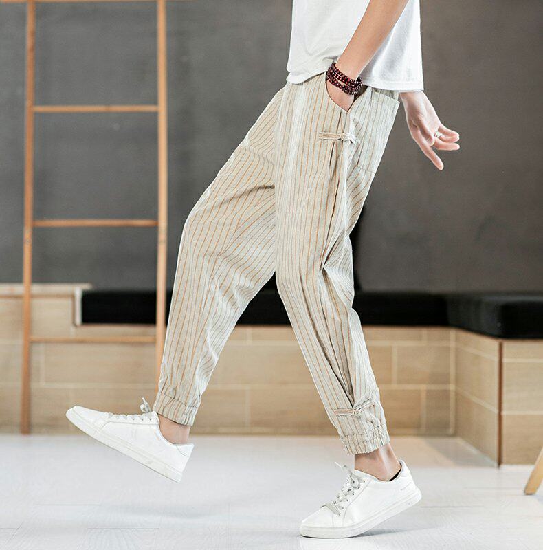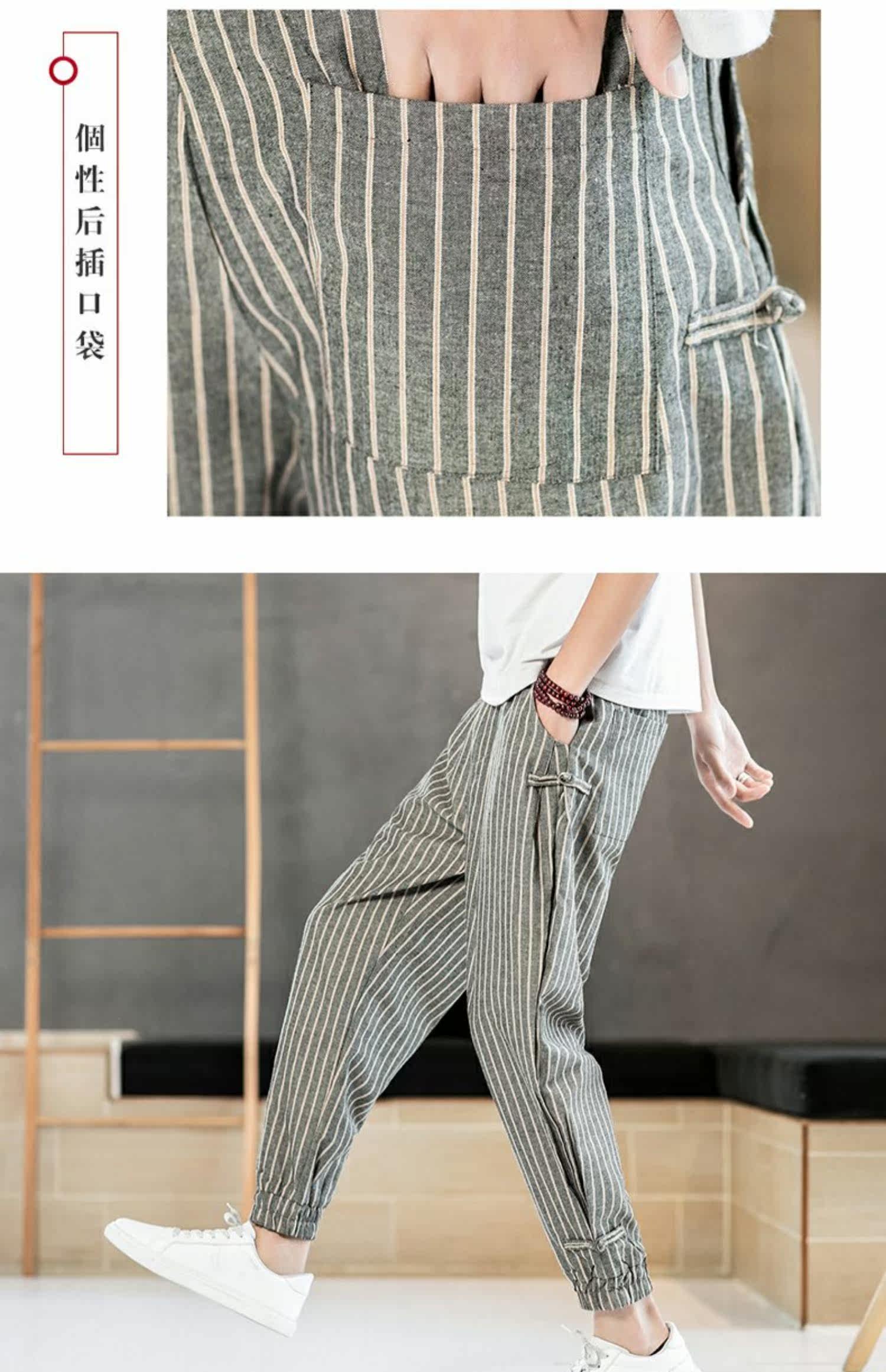 Китайские летние тонкие штаны для отдыха, трендовая подсветка пола, фонарь, китайский стиль, из хлопка и льна