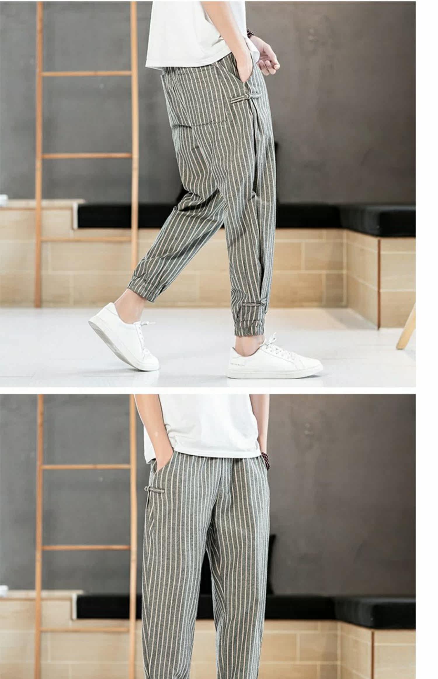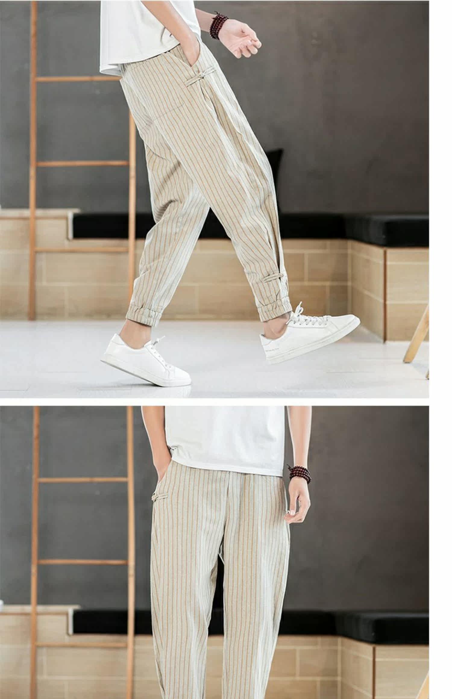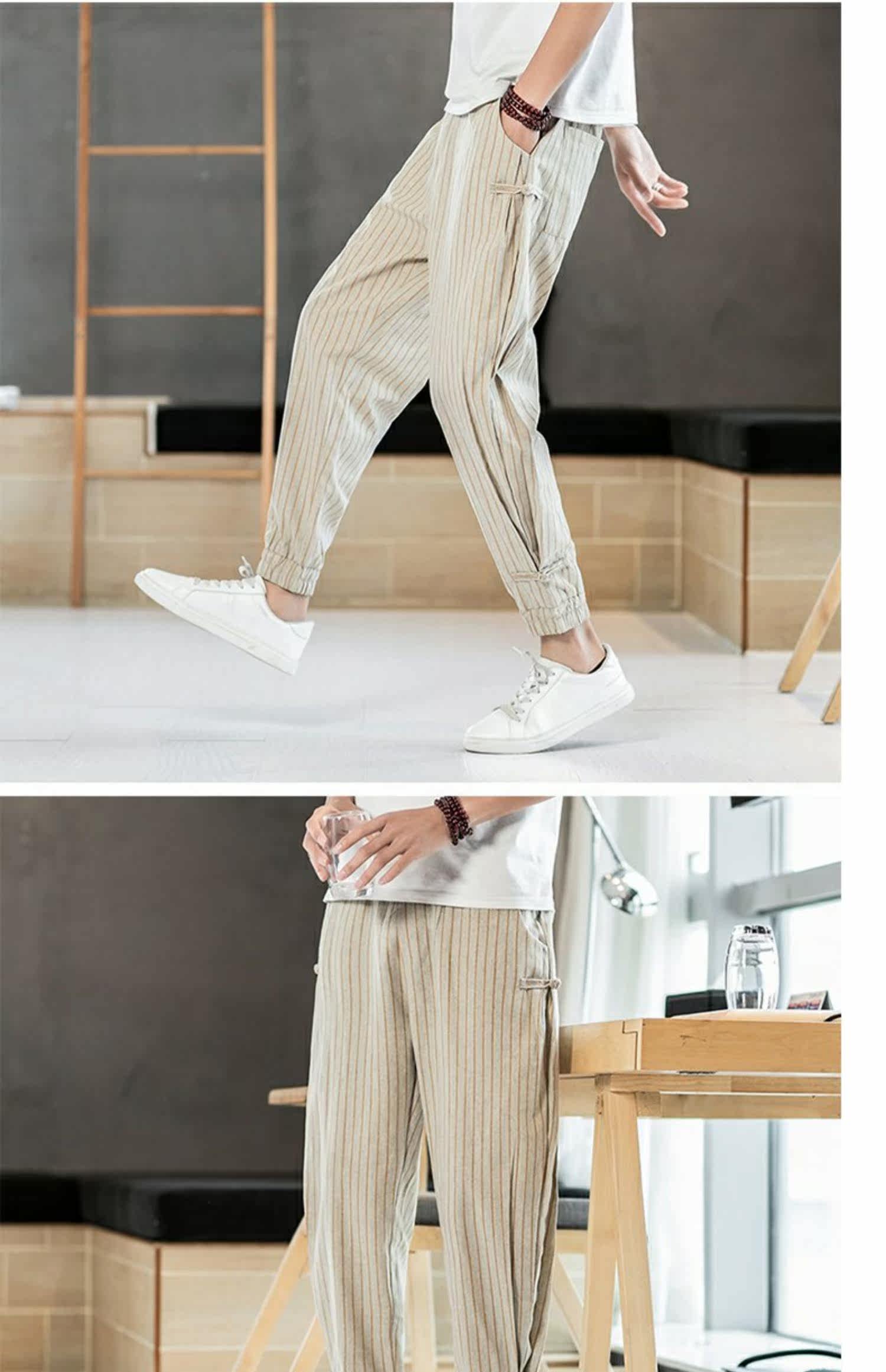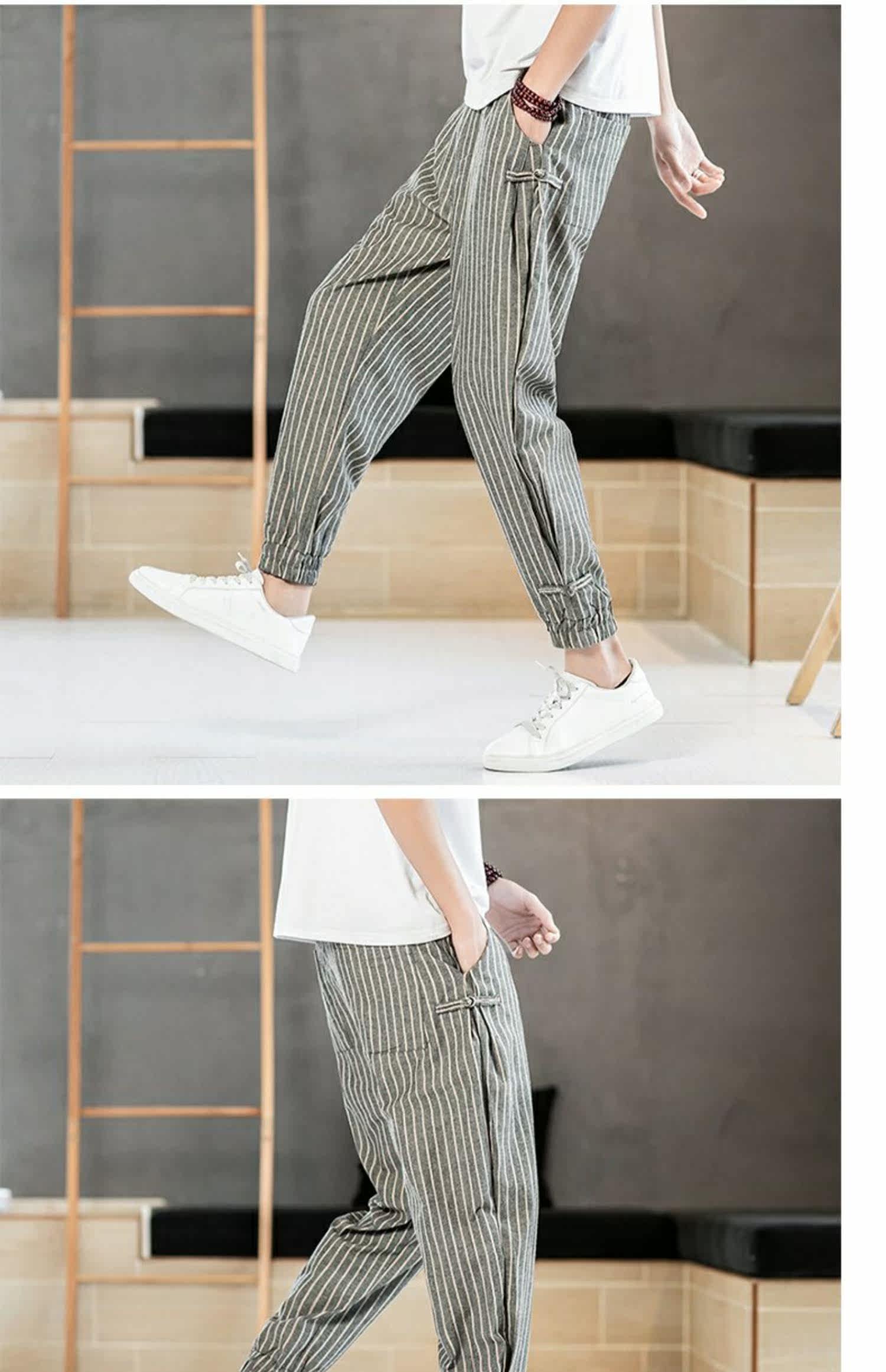 Китайские летние тонкие штаны для отдыха, трендовая подсветка пола, фонарь, китайский стиль, из хлопка и льна