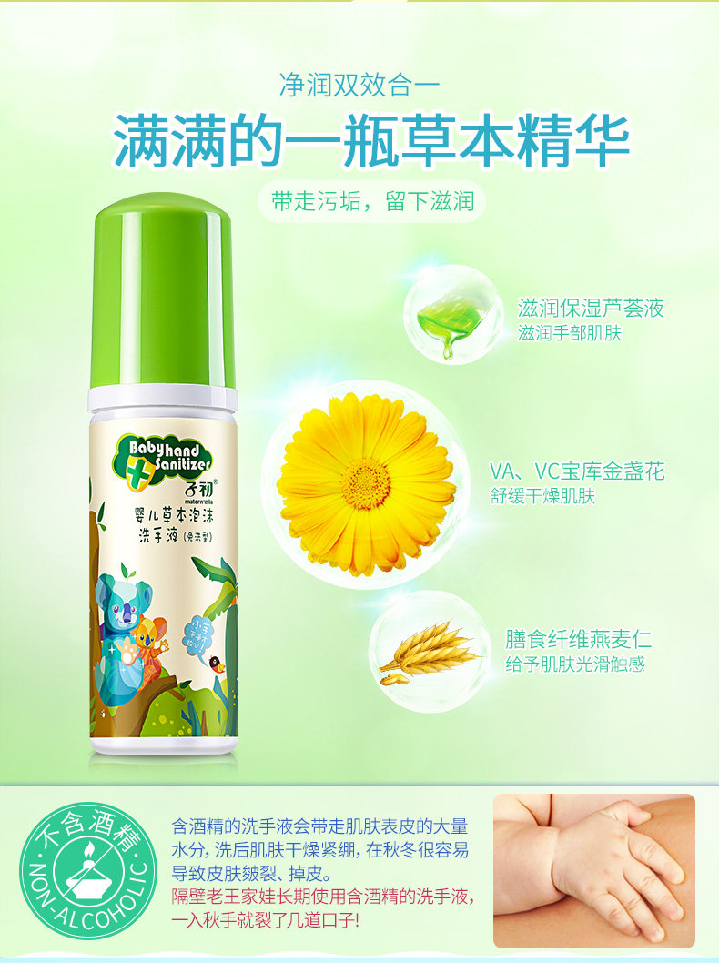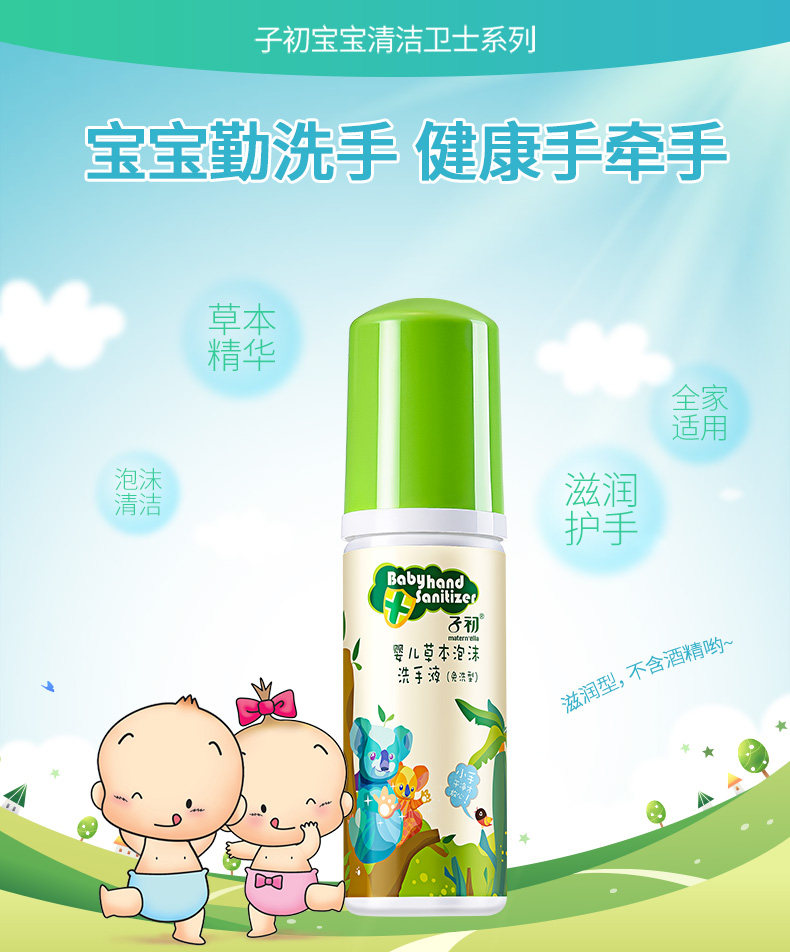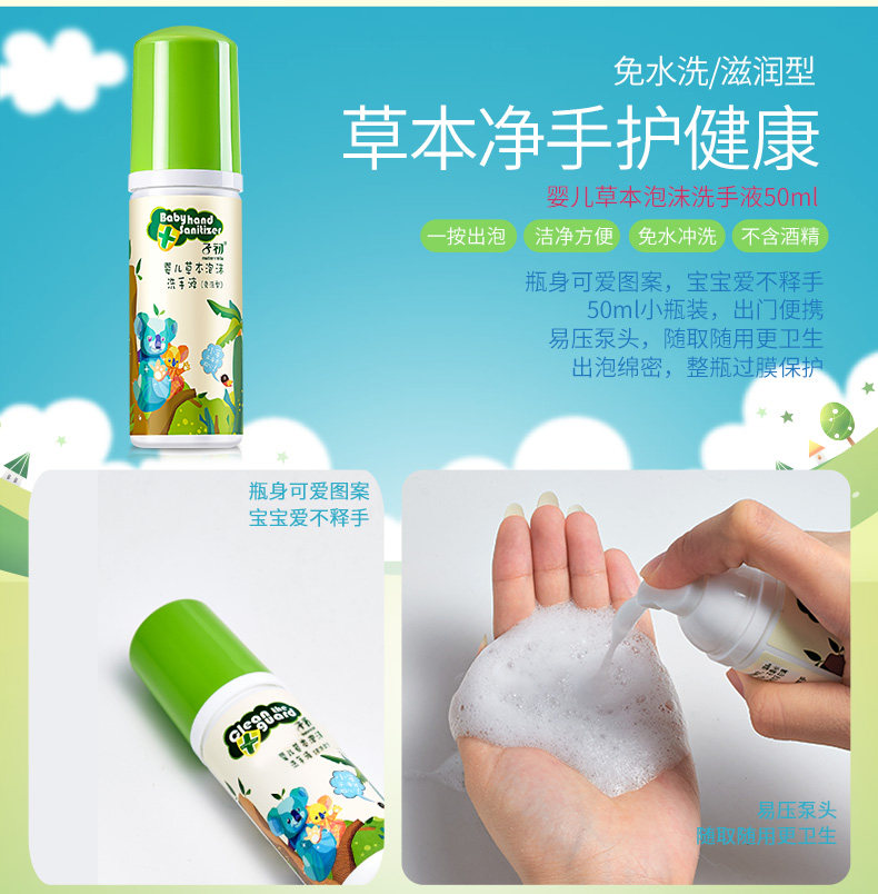 子初 Детский гигиенический санитайзер для рук из пены, детское гигиеническое портативное средство детской гигиены, 50 мл