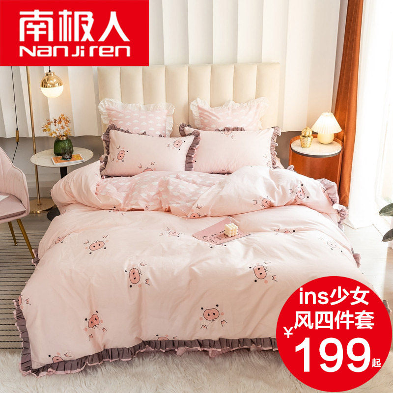 南极人 Брендовый милый хлопковый комплект, простыня для принцессы, пододеяльник, 4 предмета