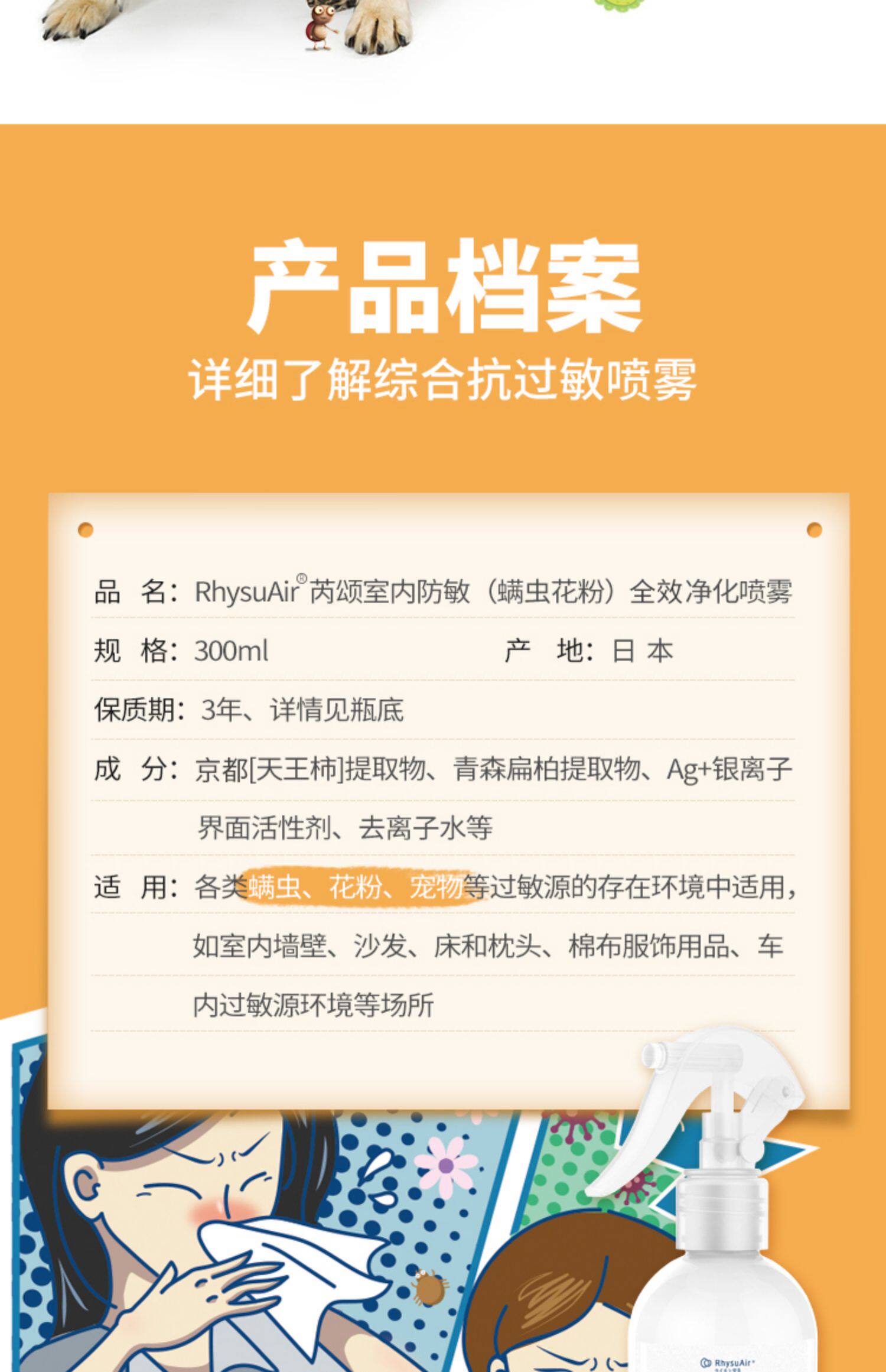 Япония импортированная анти -КАТ -аллергическое аллергическое распылительное брызговик в комнате для палаток в помещении для лечения пылевой хит