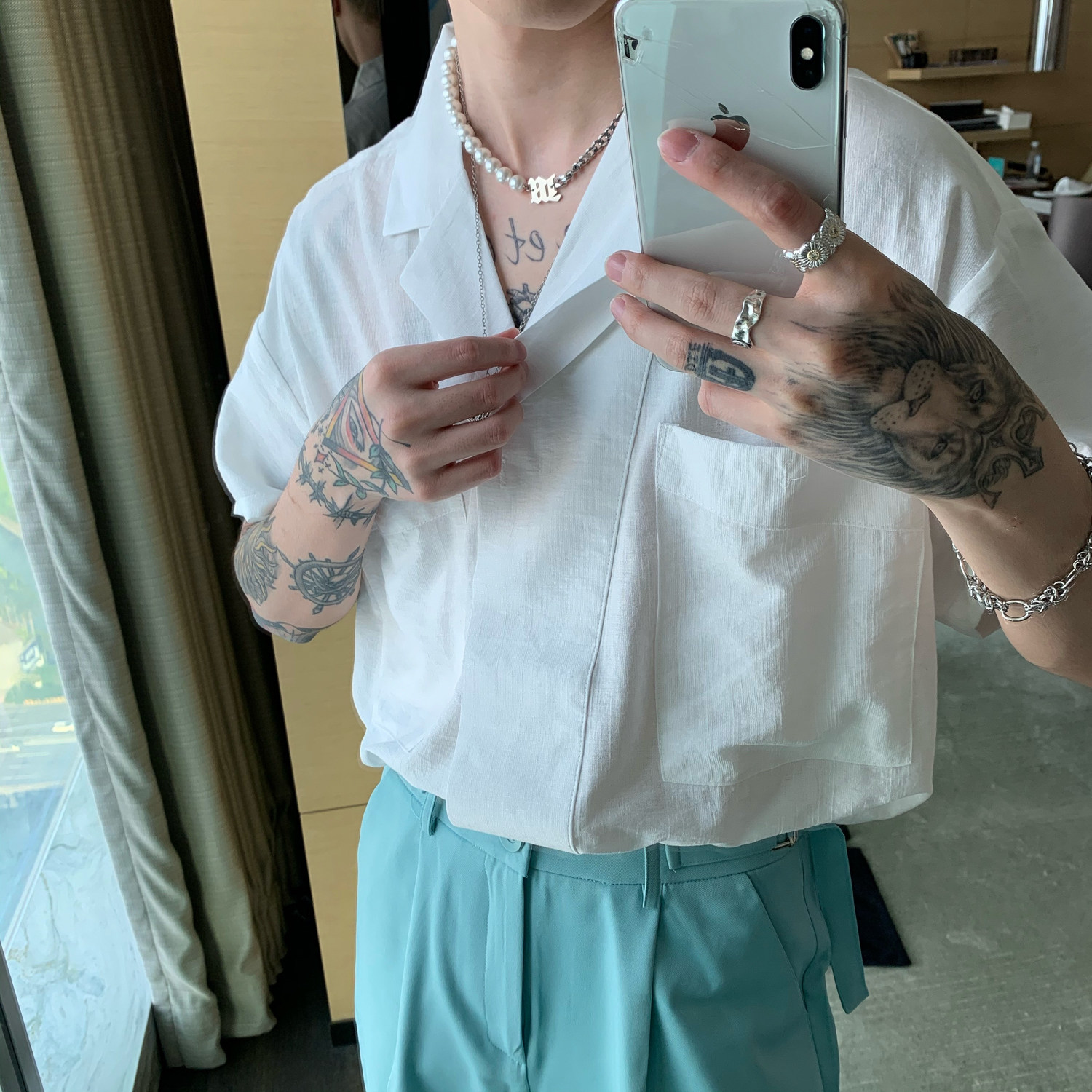 Дизайнерская мужская летняя тонкая рубашка, изысканный стиль, из хлопка и льна