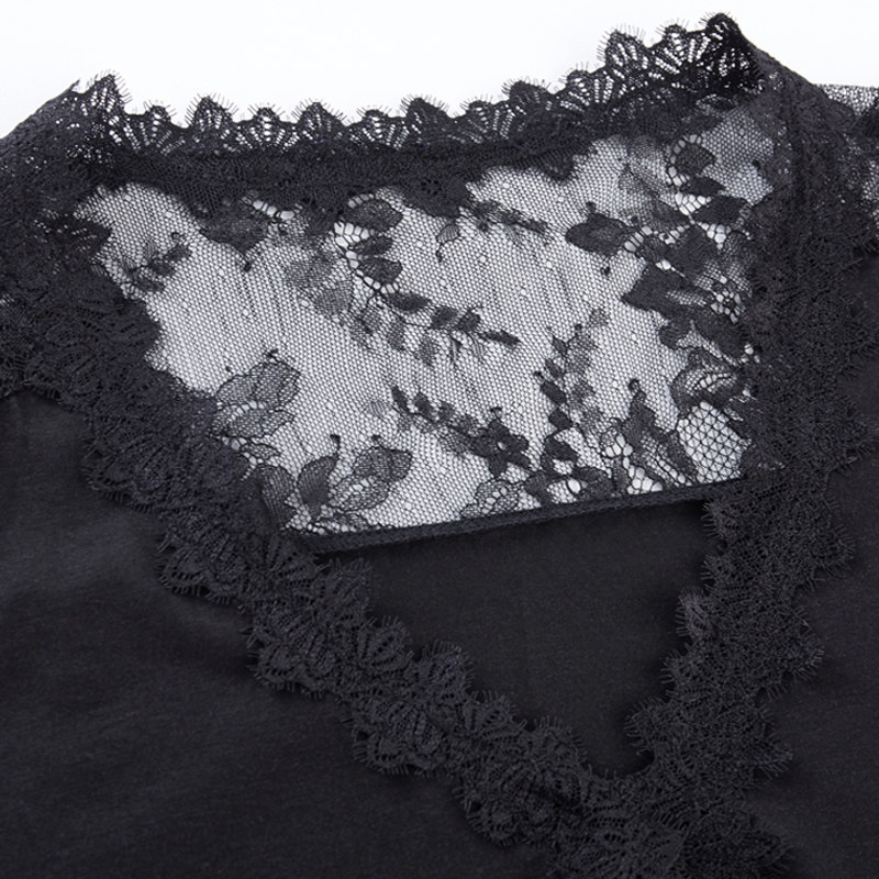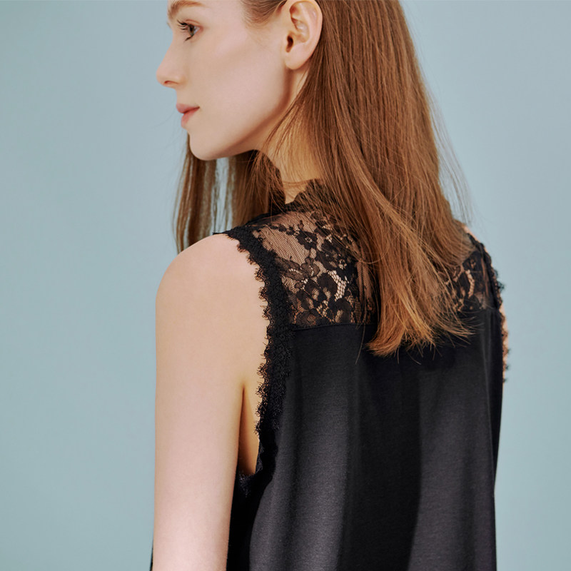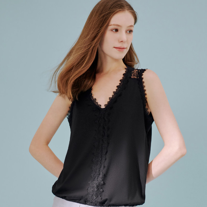 Базовая приятная телу кружевная антибактериальная дышащая дыхательная система, сексуальный жилет без рукавов, V-образный вырез, короткий рукав