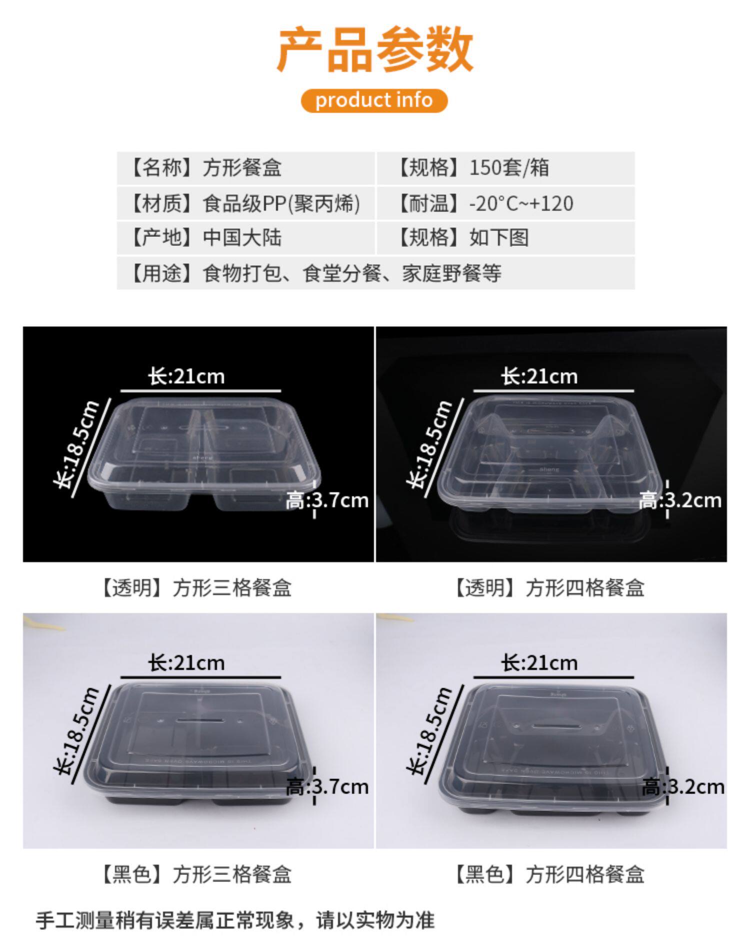 Пластиковый квадратный ланч-бокс для домашнего использования, пакет, 4 ячеек, 1000 мл