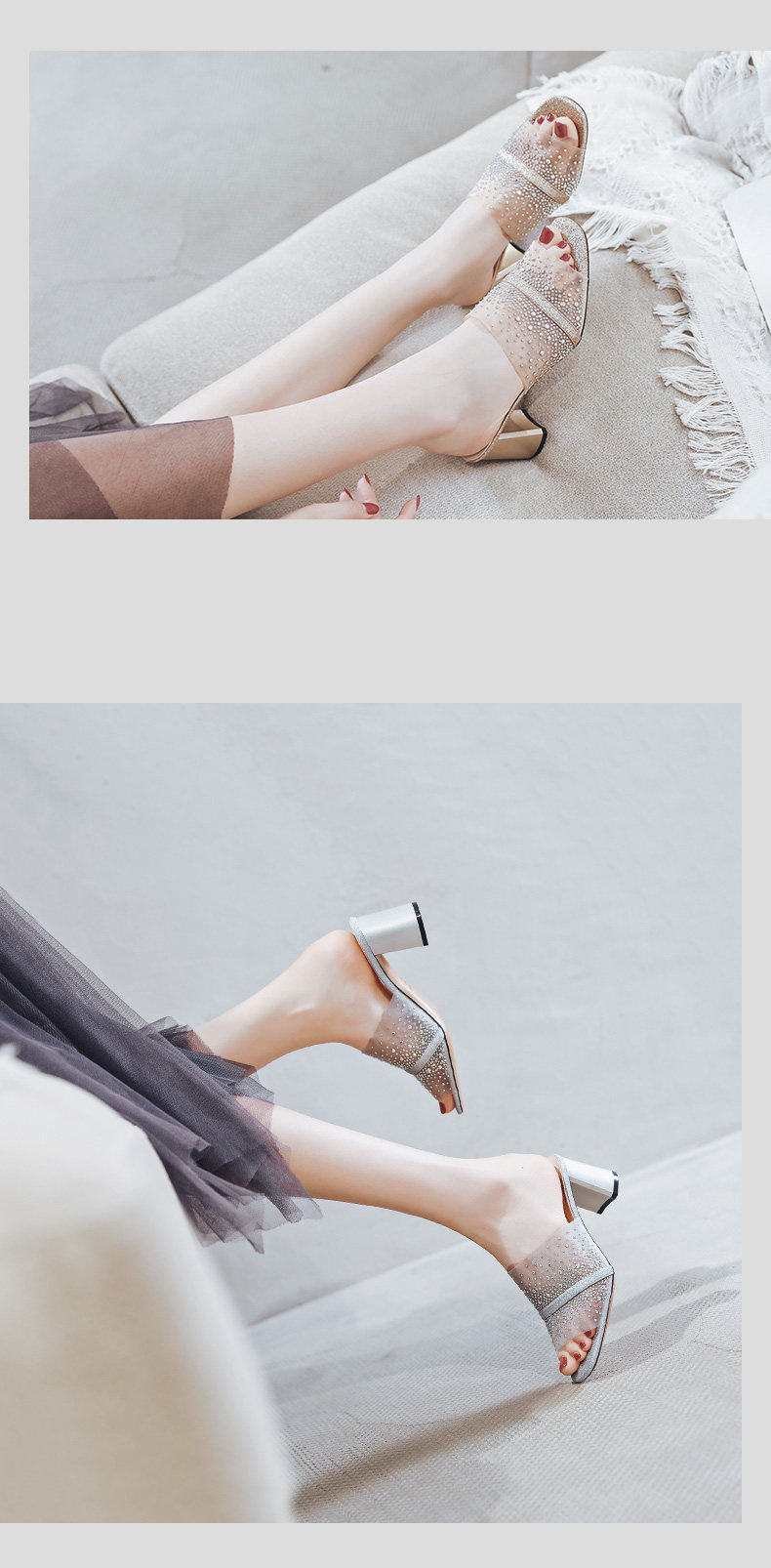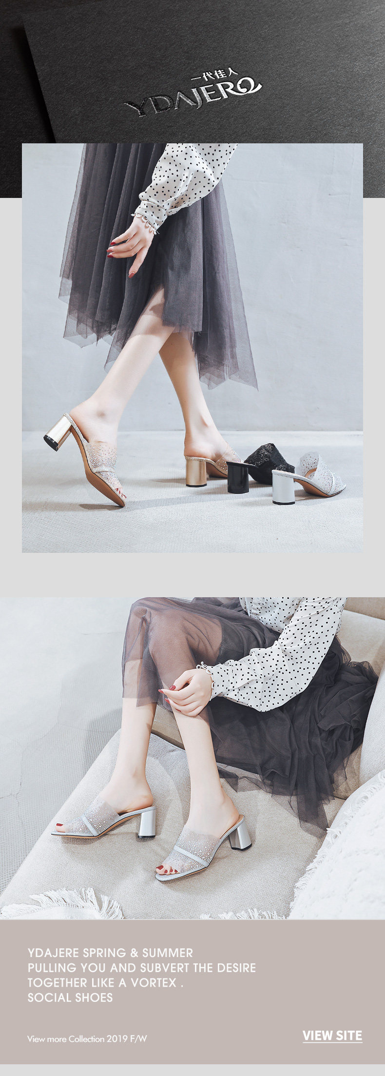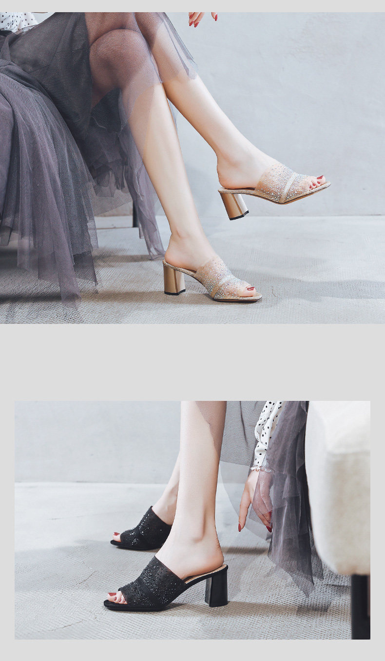 一代佳人 Летние тапочки, сетчатые черные туфли на высоком каблуке, 2020