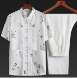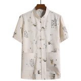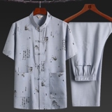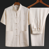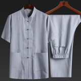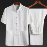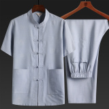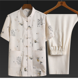 Летний комплект для пожилых людей для отдыха, ханьфу, для среднего возраста, из хлопка и льна, китайский стиль, короткий рукав