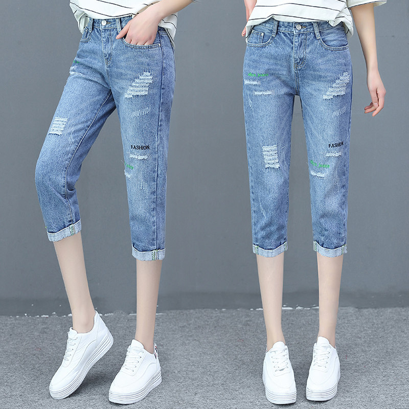 Летние джинсы, приталенные тонкие штаны