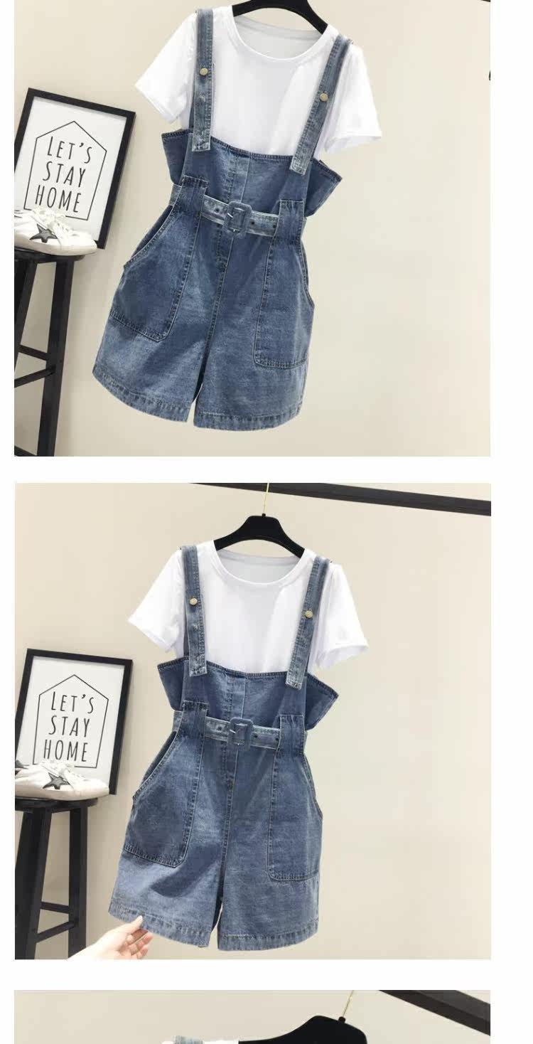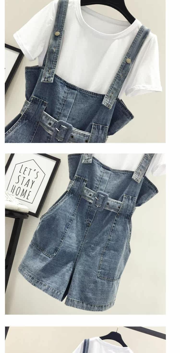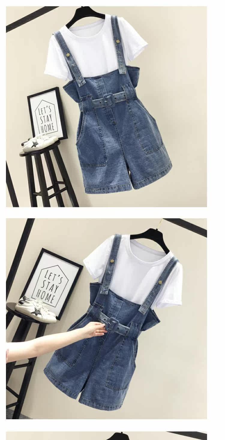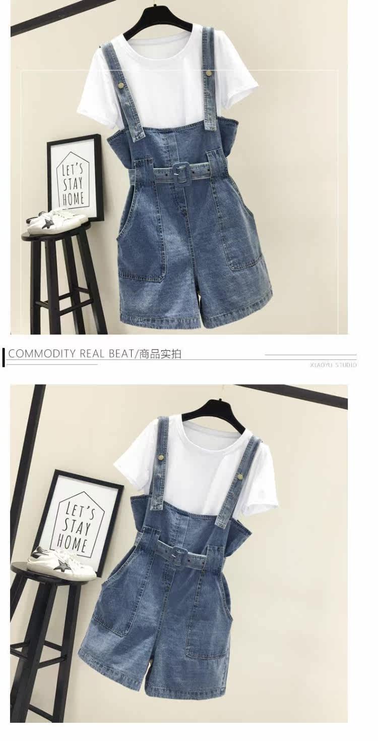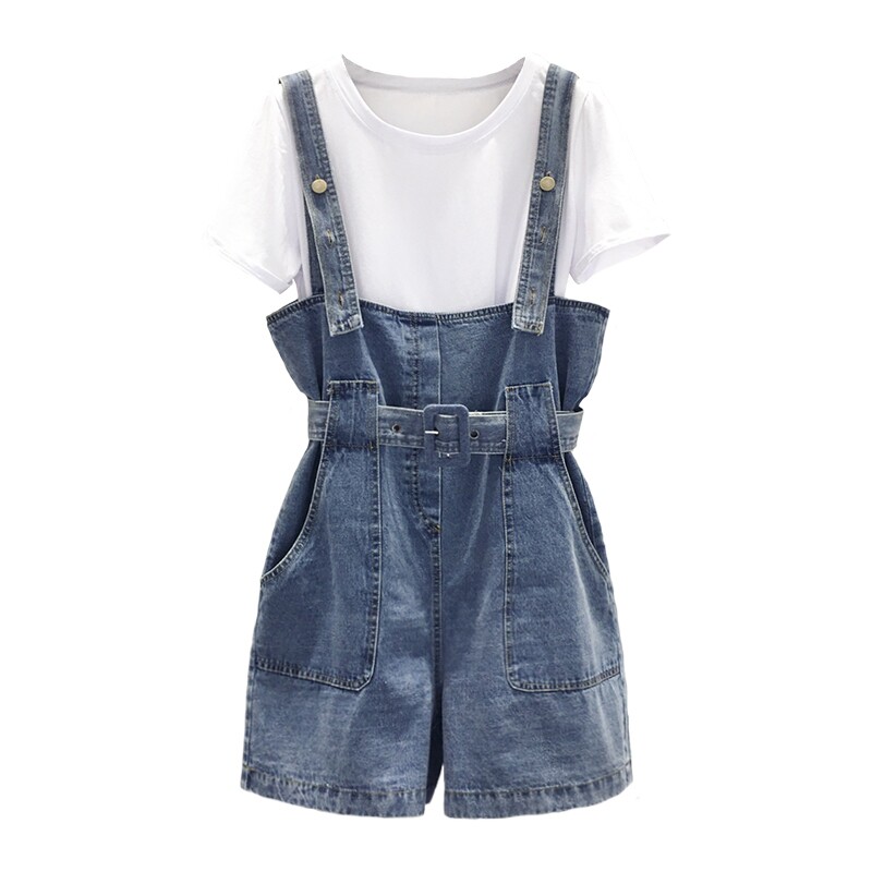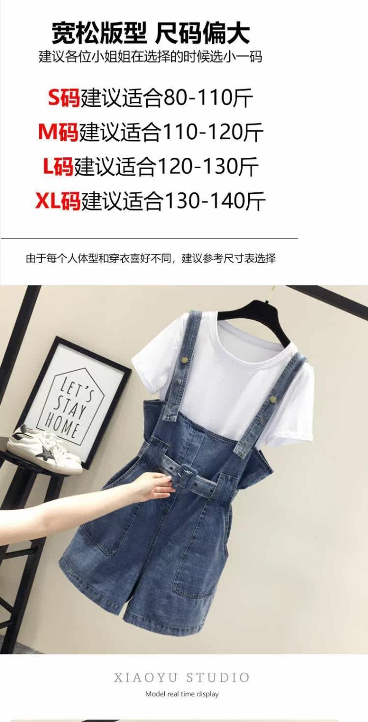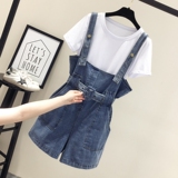 Шорты, штаны, джинсы, летняя одежда, комплект для школьников и студентов, подтяжки, в корейском стиле, высокая талия, 2020, эффект подтяжки, свободный крой