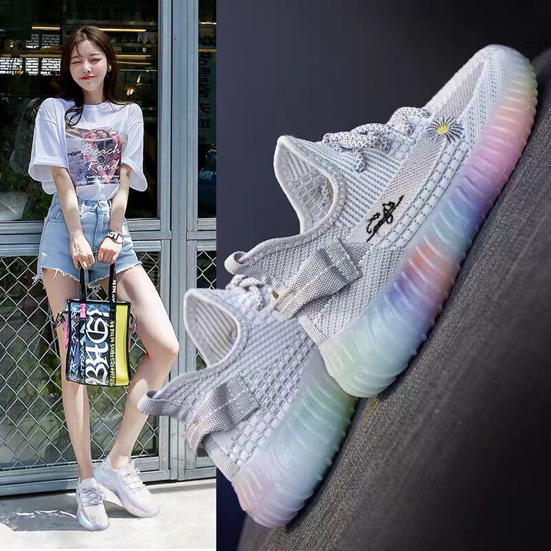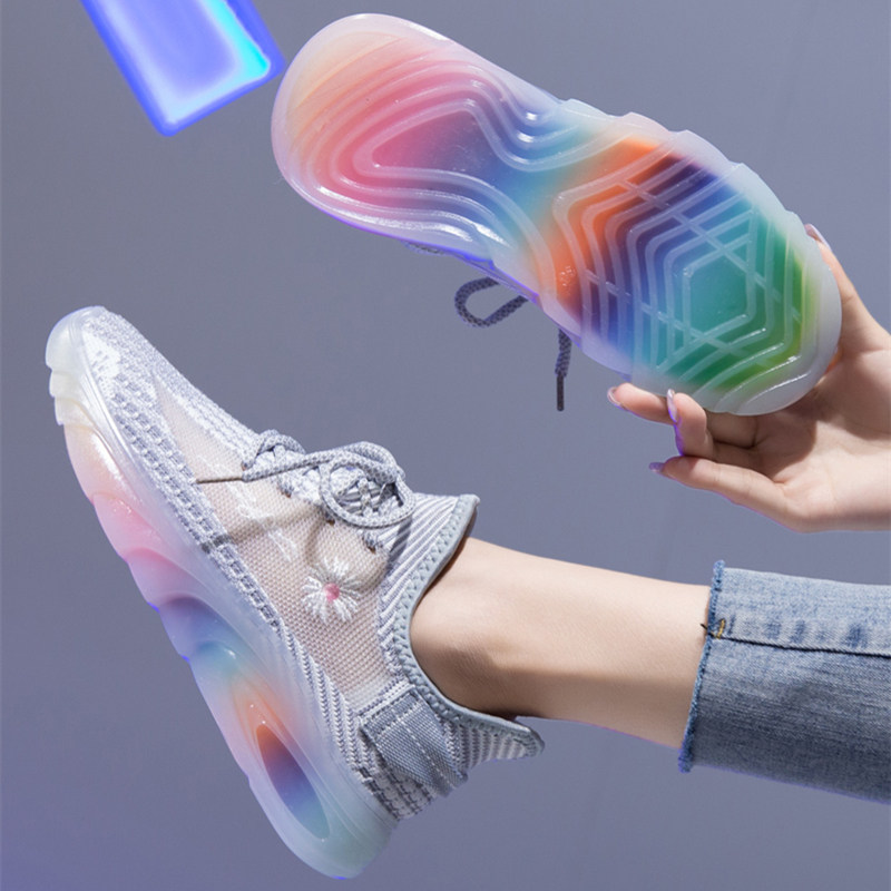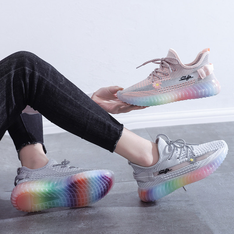 Повседневные подлинные туфли Xia Fei Zhi с кокосом, женские кроссовки с радужной подошвой, светящиеся спортивные кроссовки в стиле бега, новый сезон, желейные туфли для папы