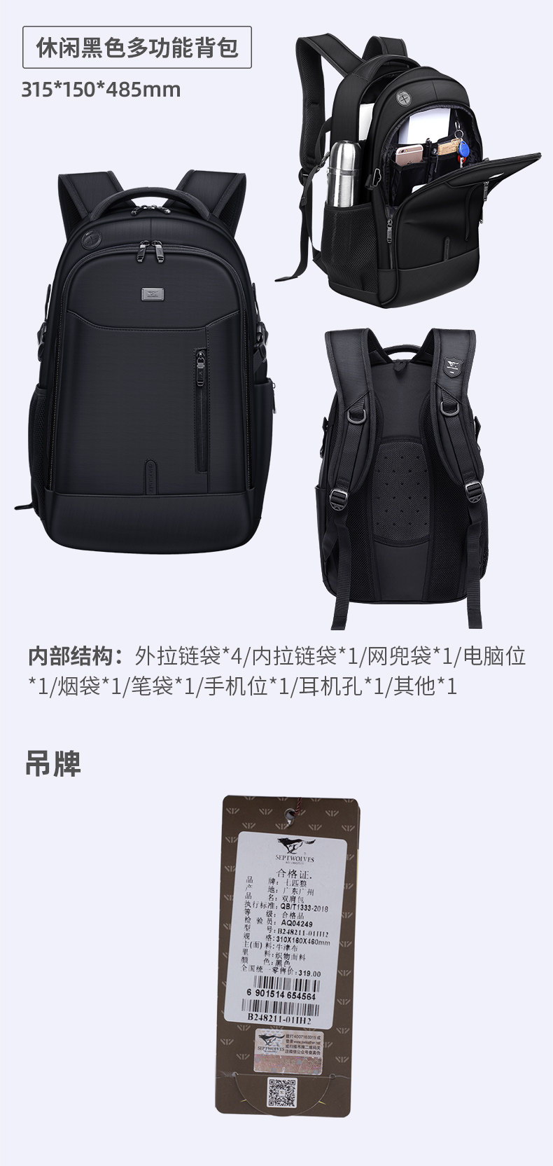 Septwolves, вместительный и большой модный трендовый тканевый мужской ноутбук, школьный рюкзак для школьников, 2020 года