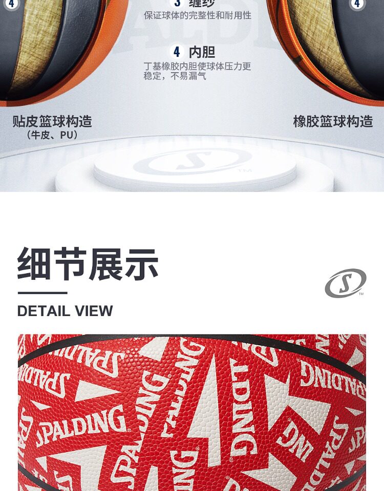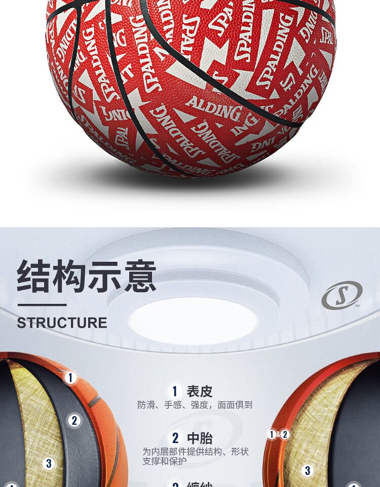 Spalding Studa Официальный красно -белый цвет соответствует классическому баскетболу PU7 Стандартный внутренний и открытый общий баскетбол
