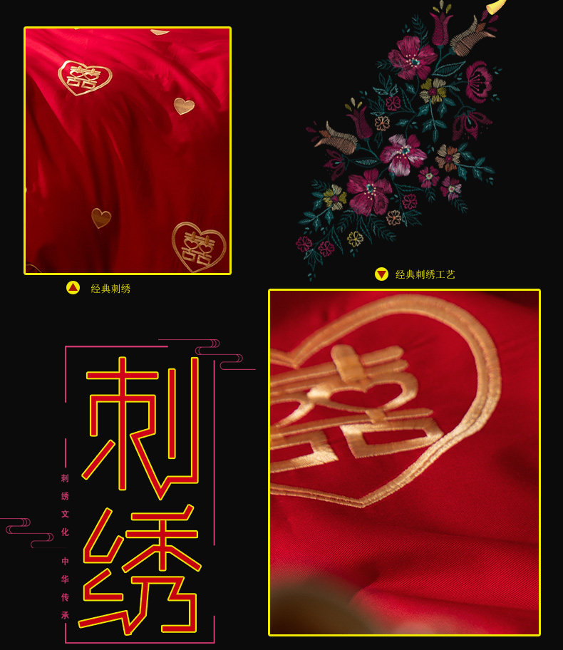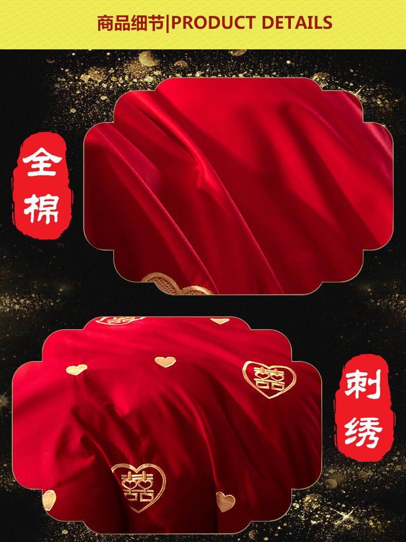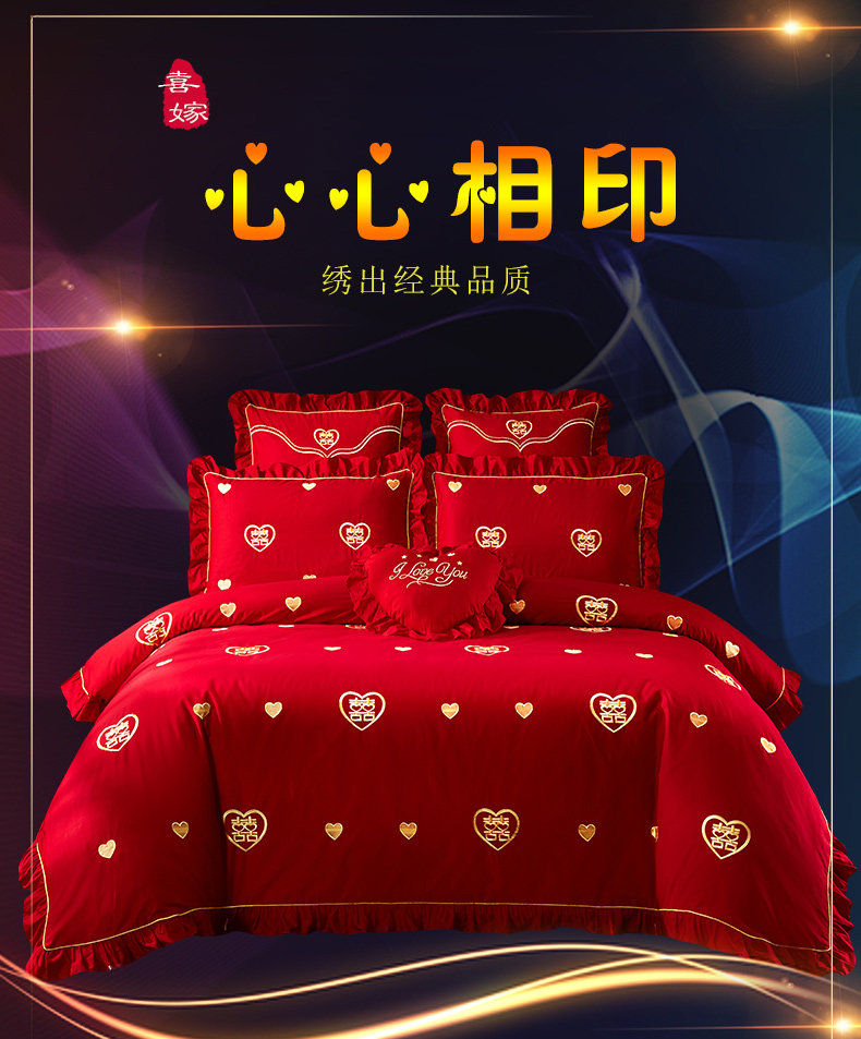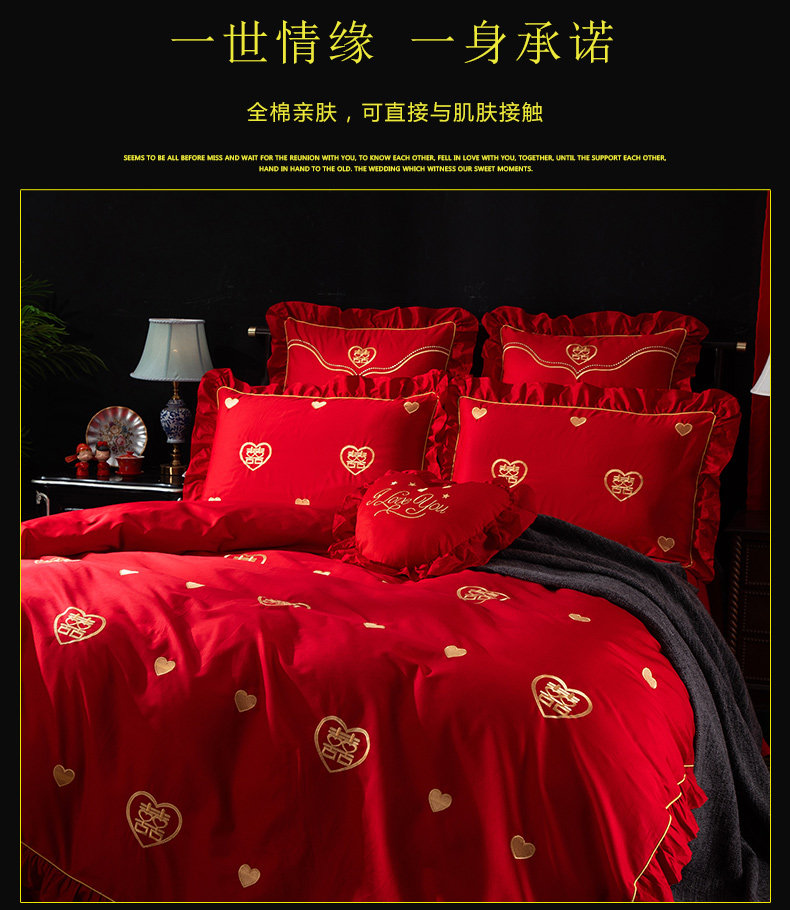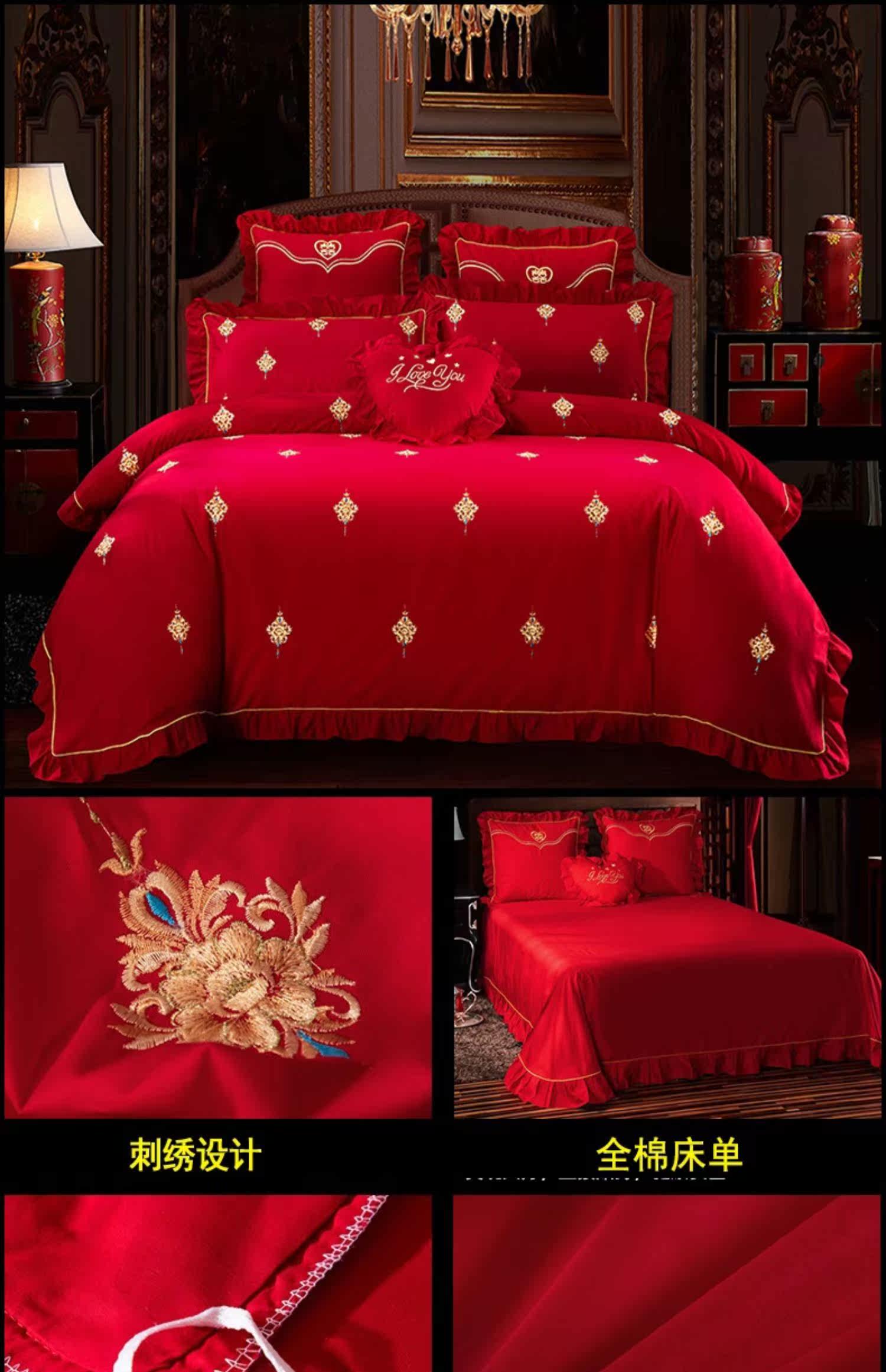 Хлопковый комплект, красная хлопковая простыня, покрывало, 4 предмета, с вышивкой
