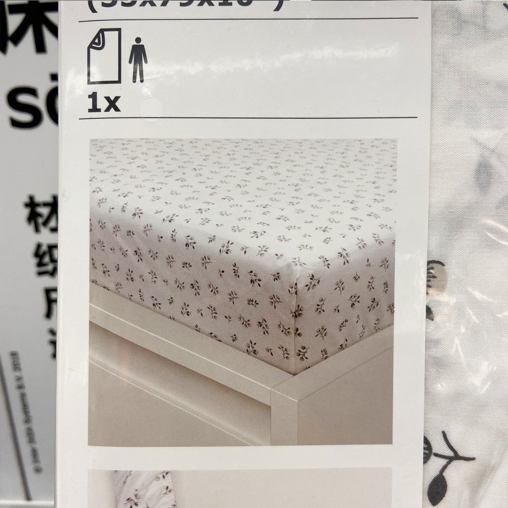 Ikea, простыня, белый матрас, принт
