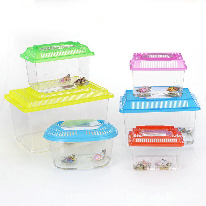 . Коробка с маленькой черепахой Пластической прозрачной крышкой ручного ремня Дешевая коробка размножения домашних животных для транспортировки мелких рыбных черепах